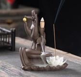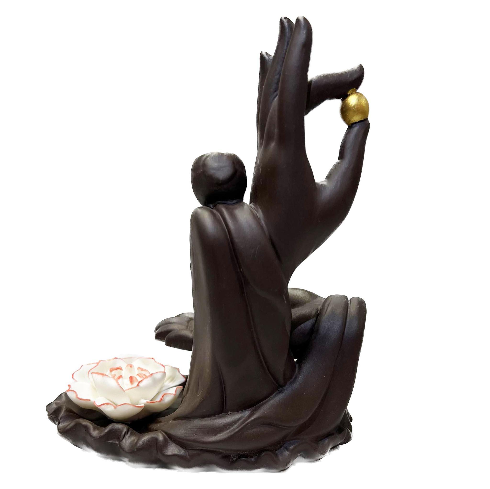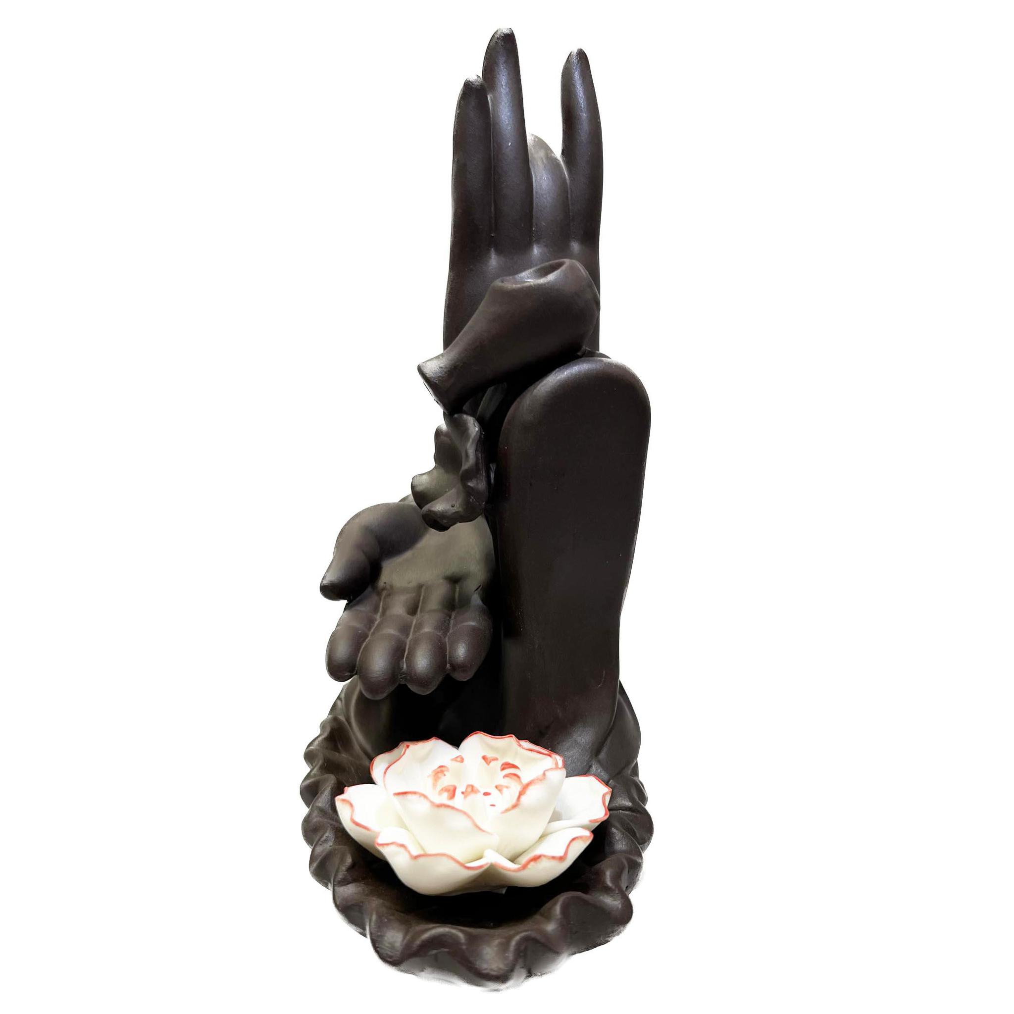2 Hands w/Lotus Backflow Incense Holder Waterfall Incense Burner, Reflux Burner, Handmade Ceramic, Home Decor for Meditation, Mini-Zen Experience 15.5*8.5*18 cm