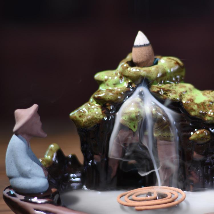 Fishing Lake w/Man Ceramic Backflow Incense Holder Waterfall Incense Burner, Reflux Burner, Handmade Ceramic, Home Décor for Meditation, Mini-Zen Experience Size: 19*11.5*12 cm