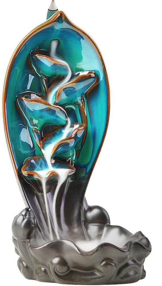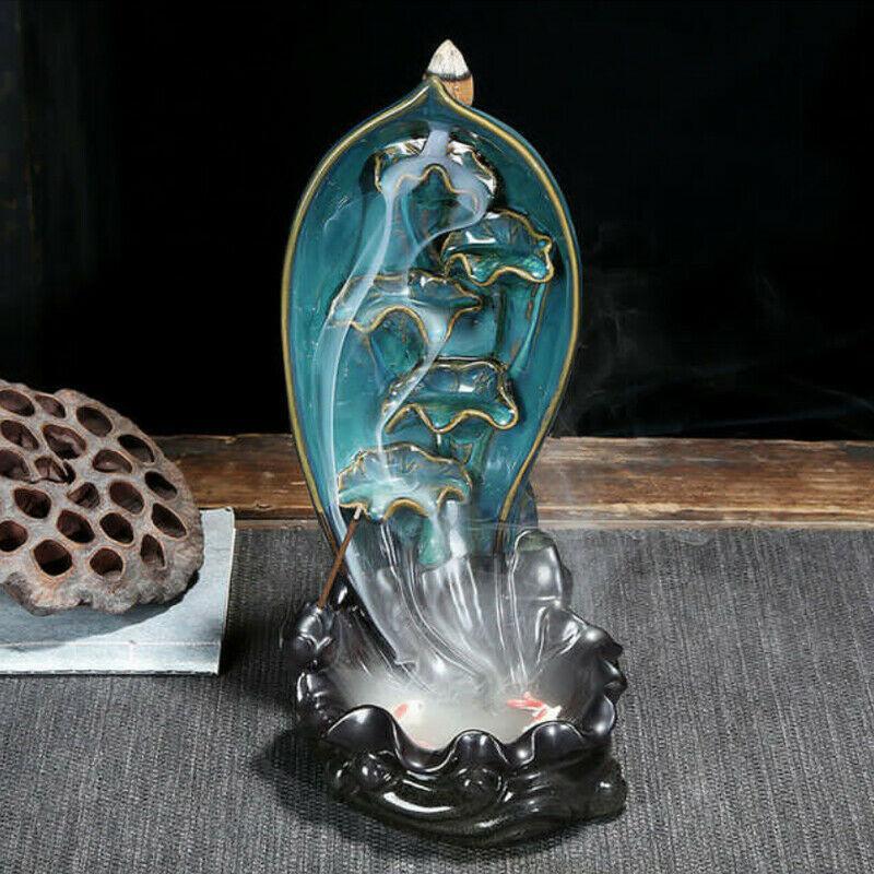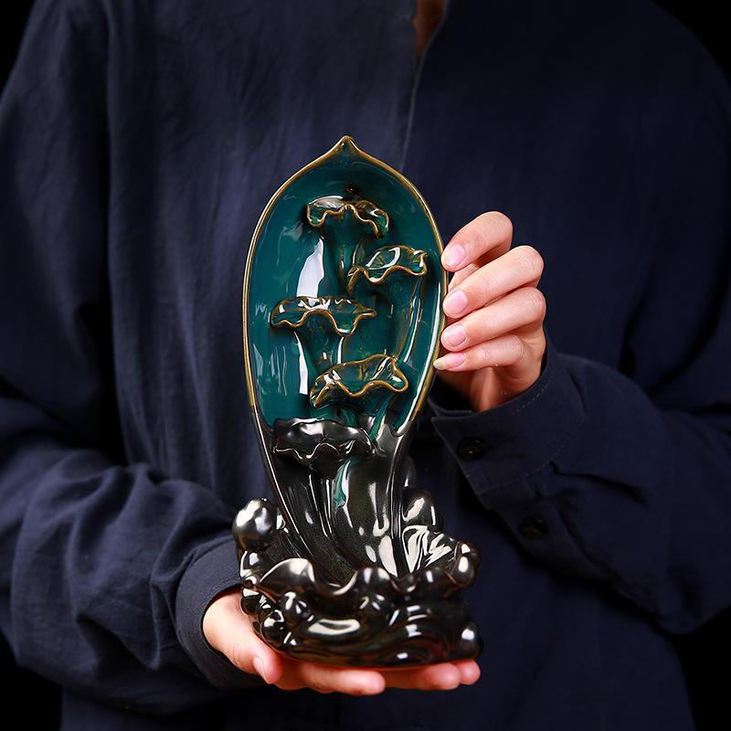 Leaf & Flower Style Ceramic Backflow Incense Holder Waterfall Incense Burner, Reflux Burner, Handmade Ceramic, Home Décor for Meditation, Mini-Zen Experience Size: 12*10*21 cm