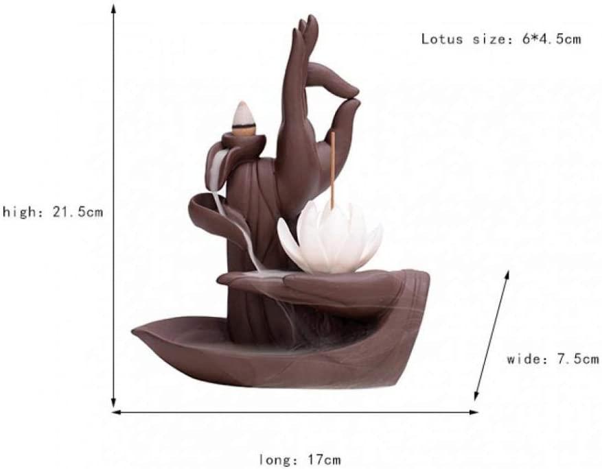 Meditation Hand with Lotus Flower Ceramic Backflow Incense Holder Waterfall Incense Burner, Reflux Burner, Handmade Ceramic, Home Decor for Meditation, Mini-Zen Experience 16*8*21 cm