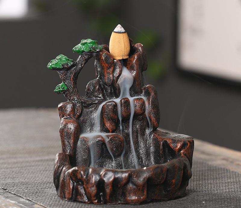 Mini-Rockery Ceramic Backflow Incense Holder Waterfall Incense Burner, Reflux Burner, Handmade Ceramic, Home Décor for Meditation, Mini-Zen Experience Size: 10.5*8.5 cm