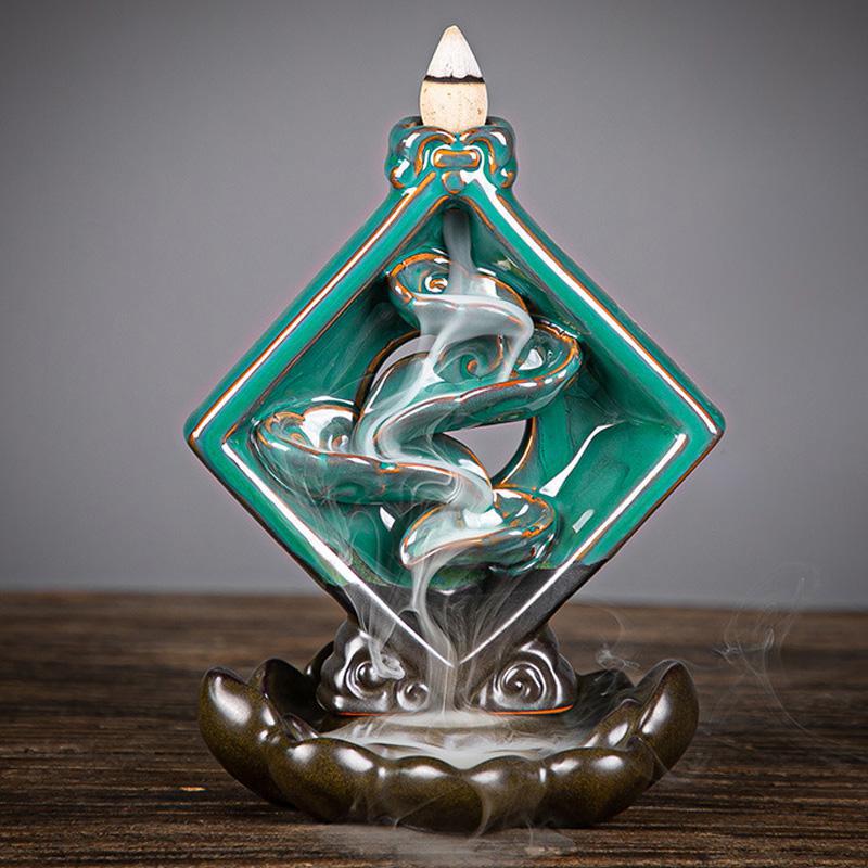 Rhombus with Waterfall Ceramic Backflow Incense Holder Waterfall Incense Burner, Reflux Burner, Handmade Ceramic, Home Décor for Meditation, Mini-Zen Experience Size: 12*9.5*16 cm