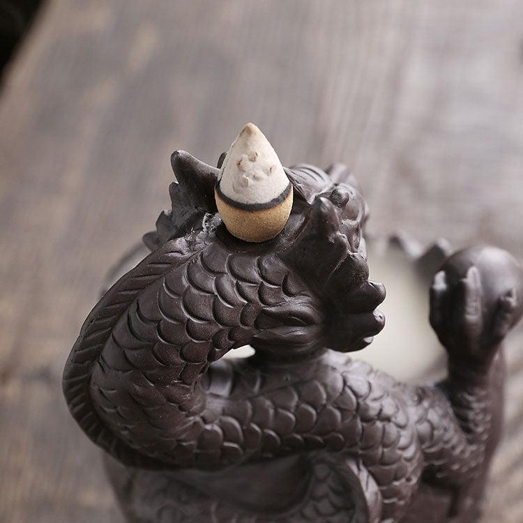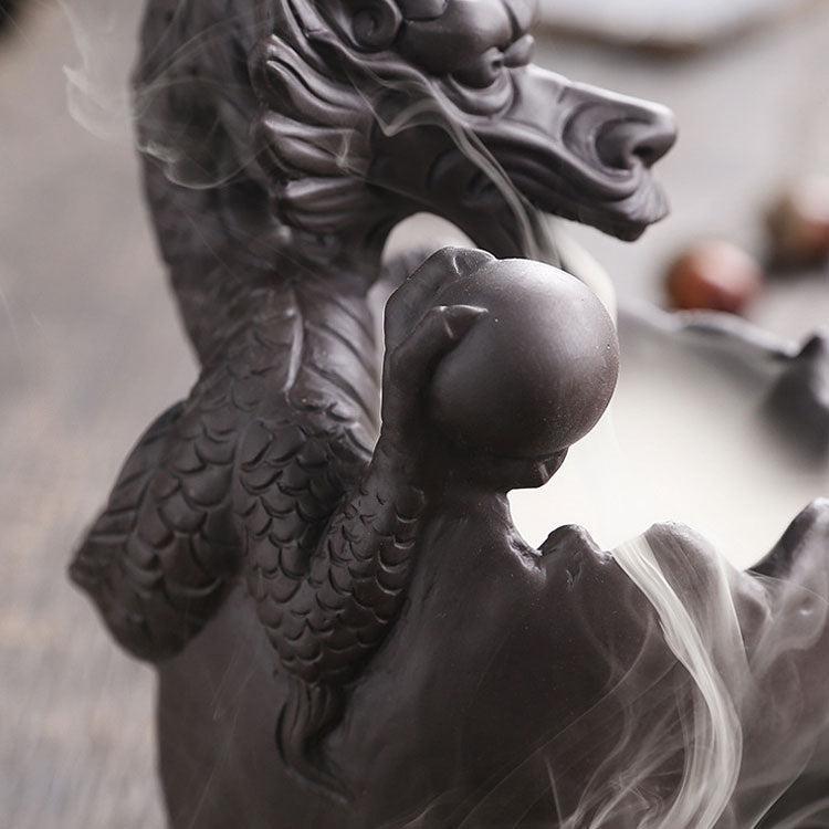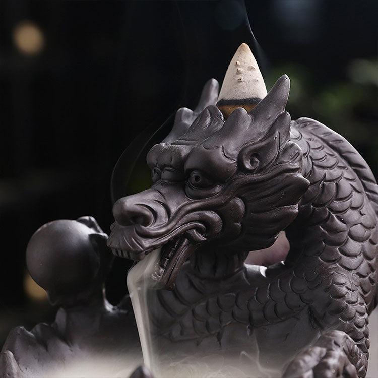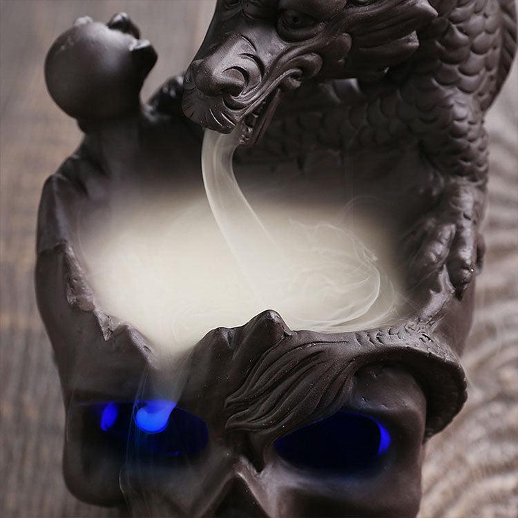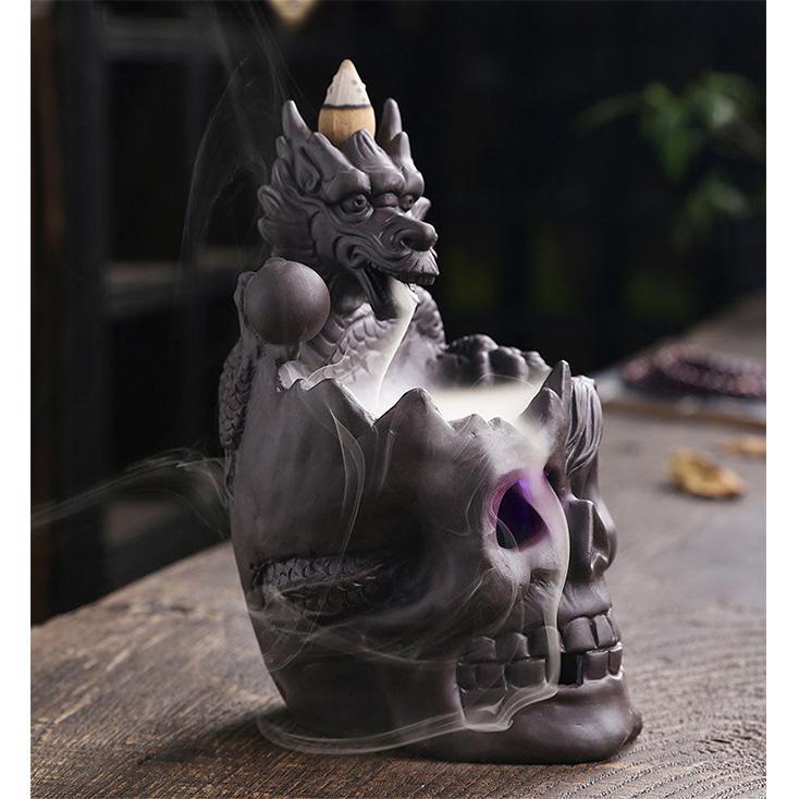 Skull & Dragon w/Light Ceramic Backflow Incense Holder Waterfall Incense Burner, Reflux Burner, Handmade Ceramic, Home Décor for Meditation, Mini-Zen Experience Size: 10.6*12*16 cm