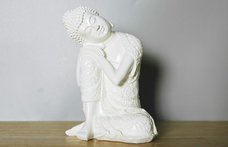 Sitting Buddha White Resin Figures Statue Ornament Indoor or Outdoor Decor