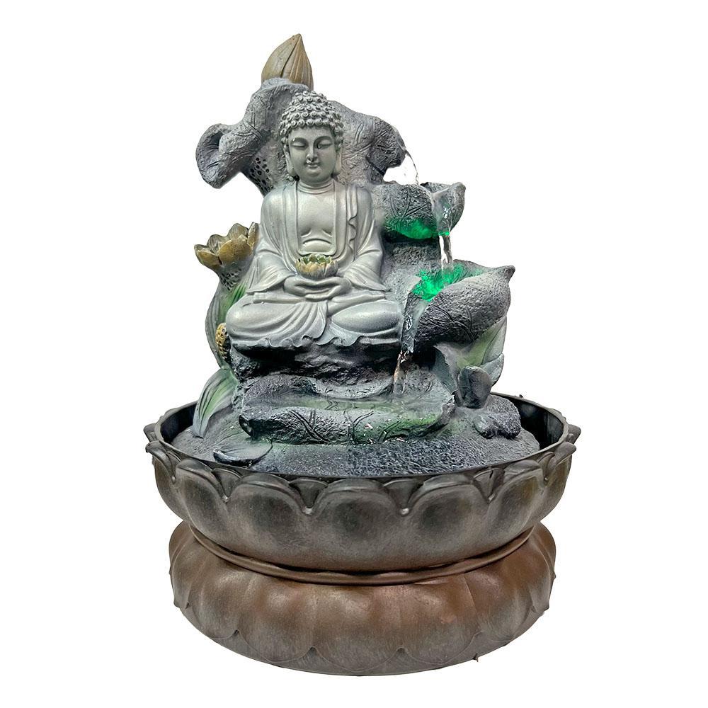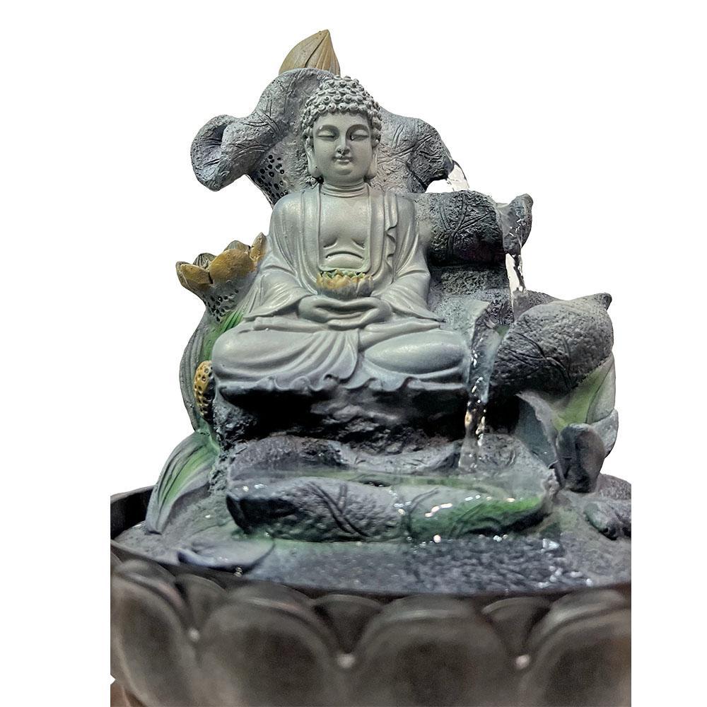 Meditating Buddha with Leaves & LED Light Antique Resin Tabletop Waterfall Fountain