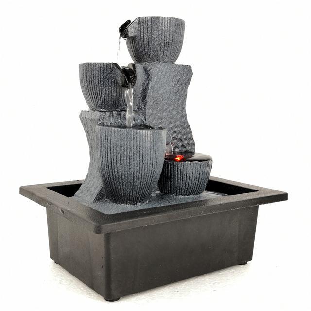 4-Cups with Rectangular Base & LED Antique Resin Tabletop Waterfall Fountain