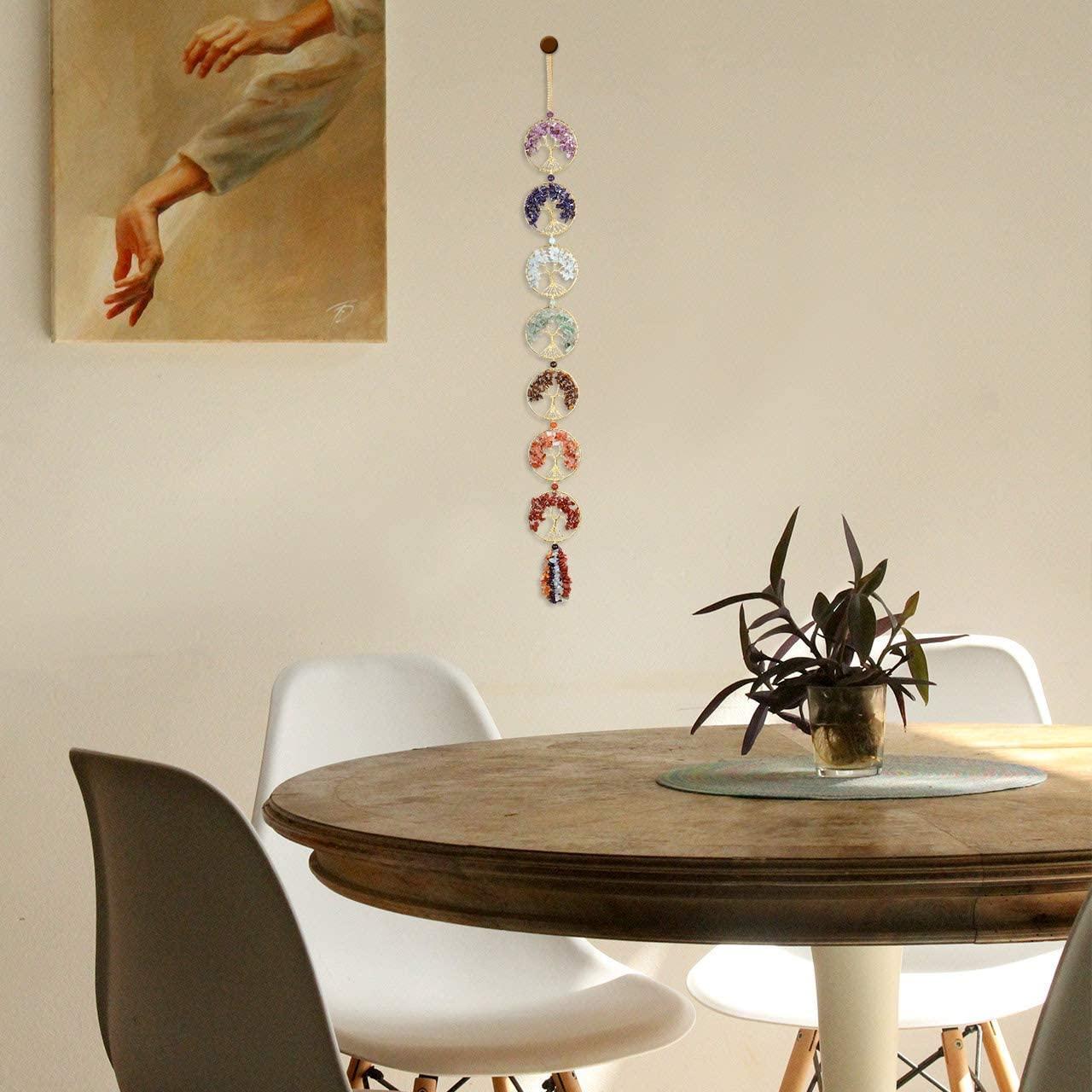 Crystals 7-Chakra Tree of Life Wall Hanging Ornament Decoration for Energy Balancing Good Luck Reiki Yoga Meditation Protection