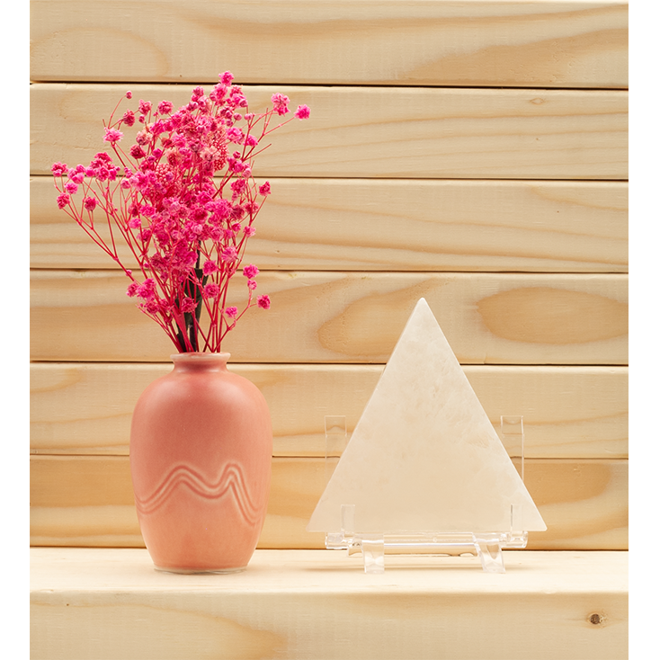 Sit with the plate in your hands. If using a Triangle, point it away from you to release stress, or toward you to invite clarity. If using a Round plate, visualize a sphere of light expanding from it.