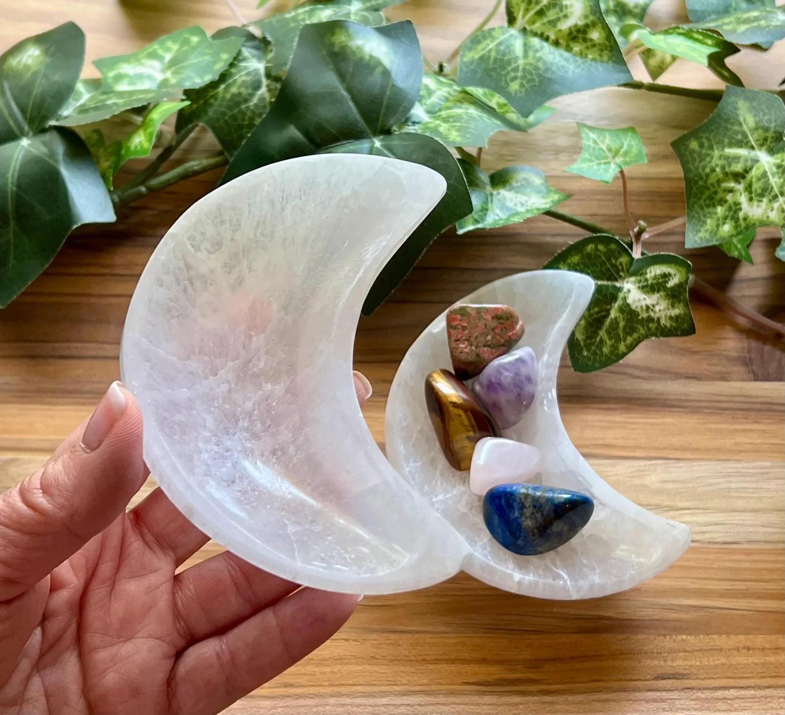 - Abalone Ritual Shells: Place your moon bowl alongside a natural abalone shell to harmonize the celestial “light” energy of Selenite with the grounding “water” energy of the ocean.