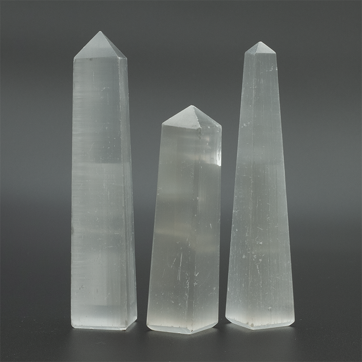 Selenite Crystals are perfect for making your own energy grids. For example, creating a circle of white light by connecting the ends of selenite rods to celestite crystals will create a tremendous healing power chamber that can be felt with great force. Step inside the circle to feel immense energy being sent through the feet and up towards the crown chakra. Selenite was first metaphysically recognized for its ability to charge and cleanse crystals and jewelry. Leaving a Selenite rod by your bedside will cleanse your auric field and chakra centers while you sleep- it will even power up your favorite pocket stones or bracelets for the day ahead.