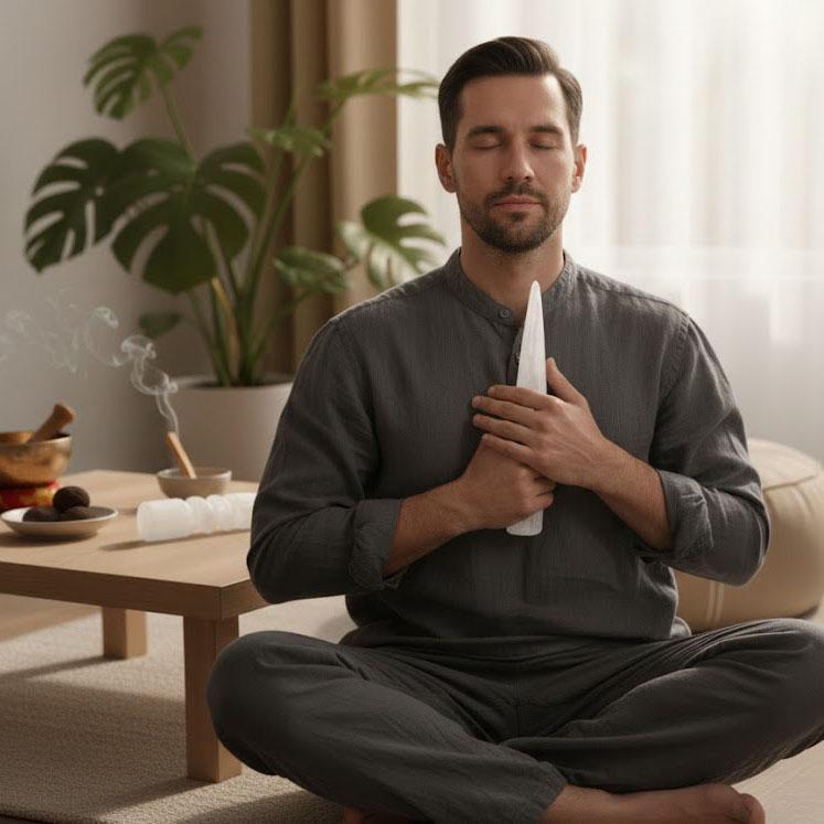 Hold the wand while focusing on a prayer or manifestation exercise. The Selenite will help direct your intention outward with concentrated force.