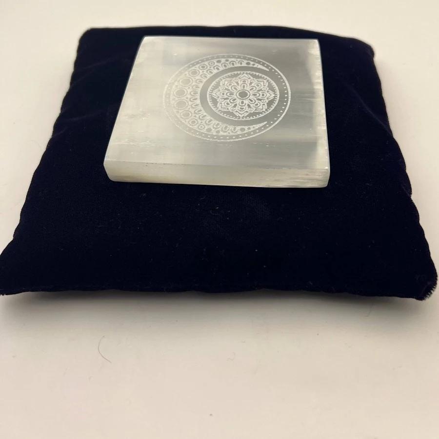 Align your intentions. Purify your tools. Reclaim your space with the Selenite Square Moon Mandala Plate.