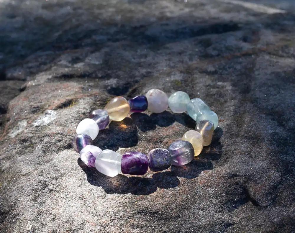 Cleaning: Wipe your 14mm beads with a soft, dry cloth. Fluorite is a softer mineral; avoid prolonged water exposure or harsh cleaners that could dull the resonance.