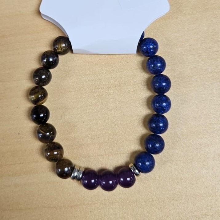 - Mineral Composition: 100% Natural 8mm Tiger’s Eye, Amethyst, and Lapis Lazuli beads.