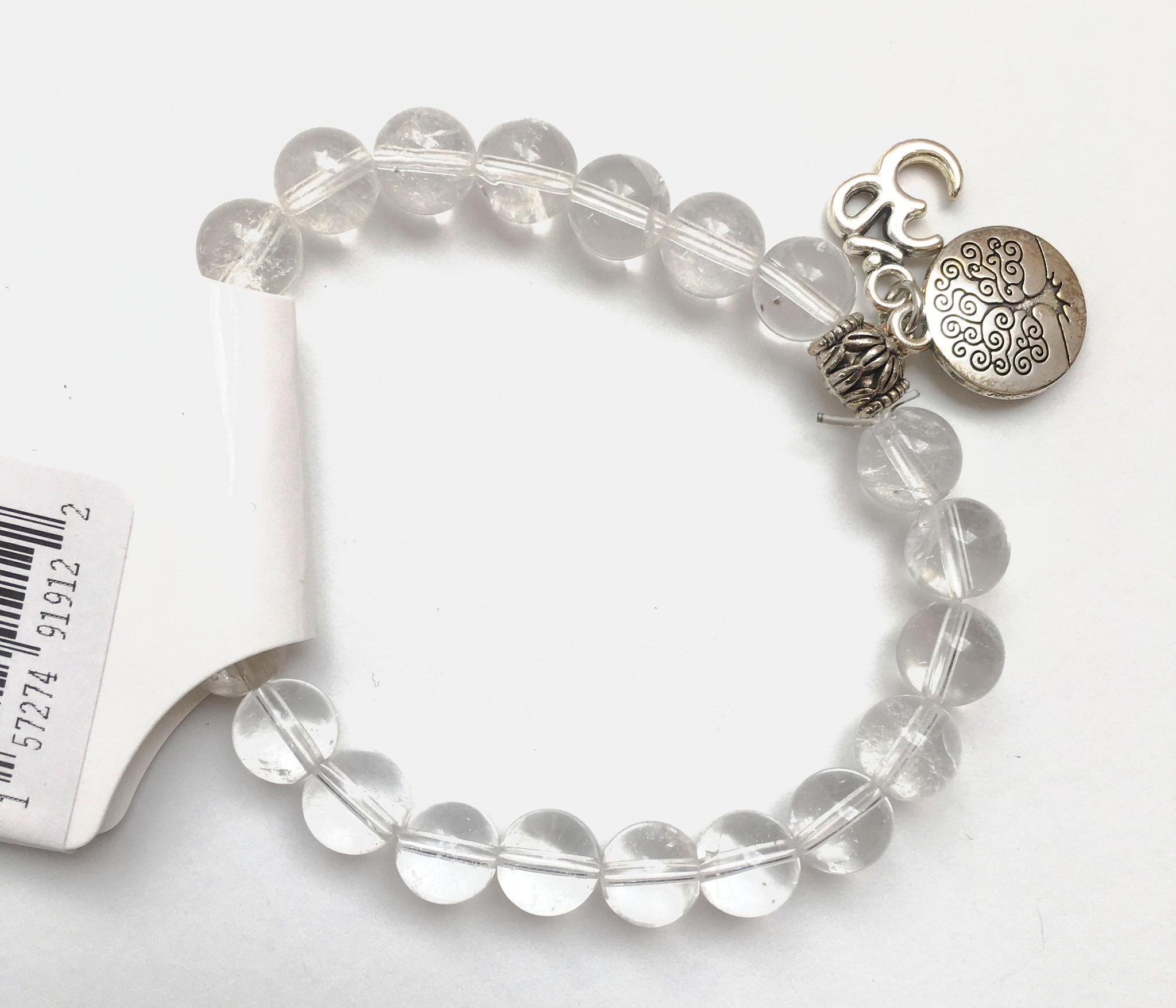 Clear Quartz Natural Stone Bracelet with Om and Tree of Life Charms