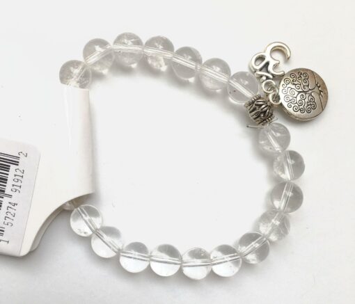 Cleaning: Wipe with a soft, dry cloth. Clear Quartz is durable, but keep silver-toned charms dry to preserve their sacred luster.
