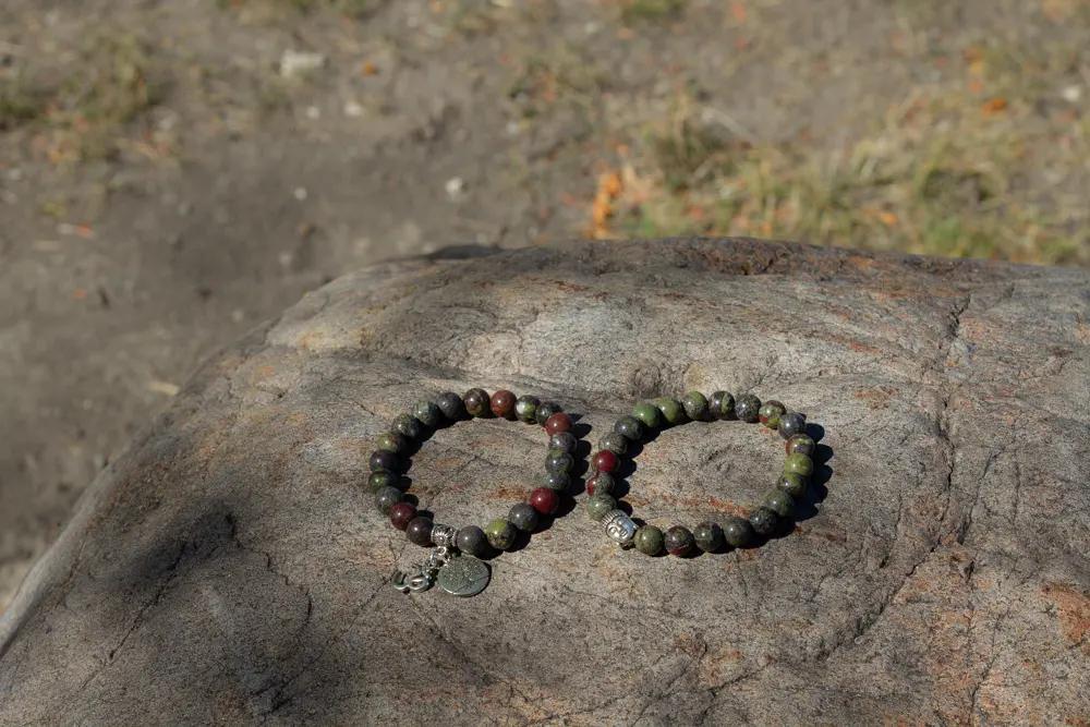 - Mineral Composition: 100% Natural Dragon Blood Jasper 8mm beads.