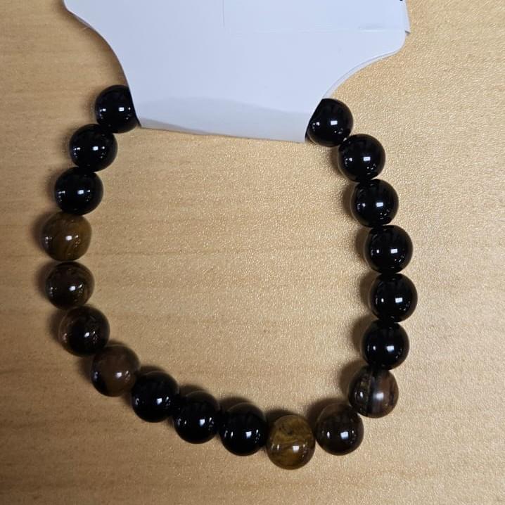- Mineral Composition: 100% Natural 8mm Black Obsidian and Tiger’s Eye beads.