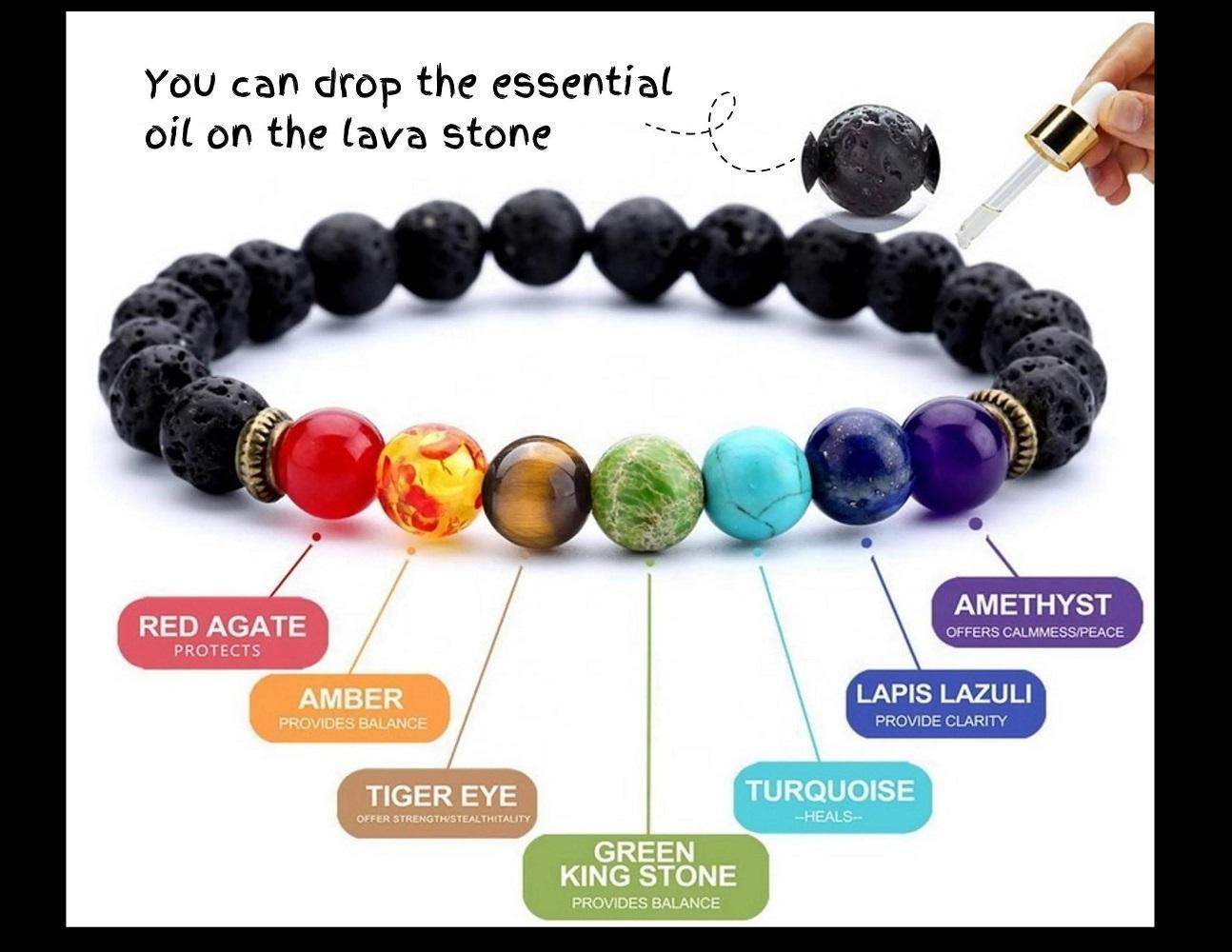 Lava Stones with 7-Chakra Natural Stone Bracelet Prayer Beads Stretchable