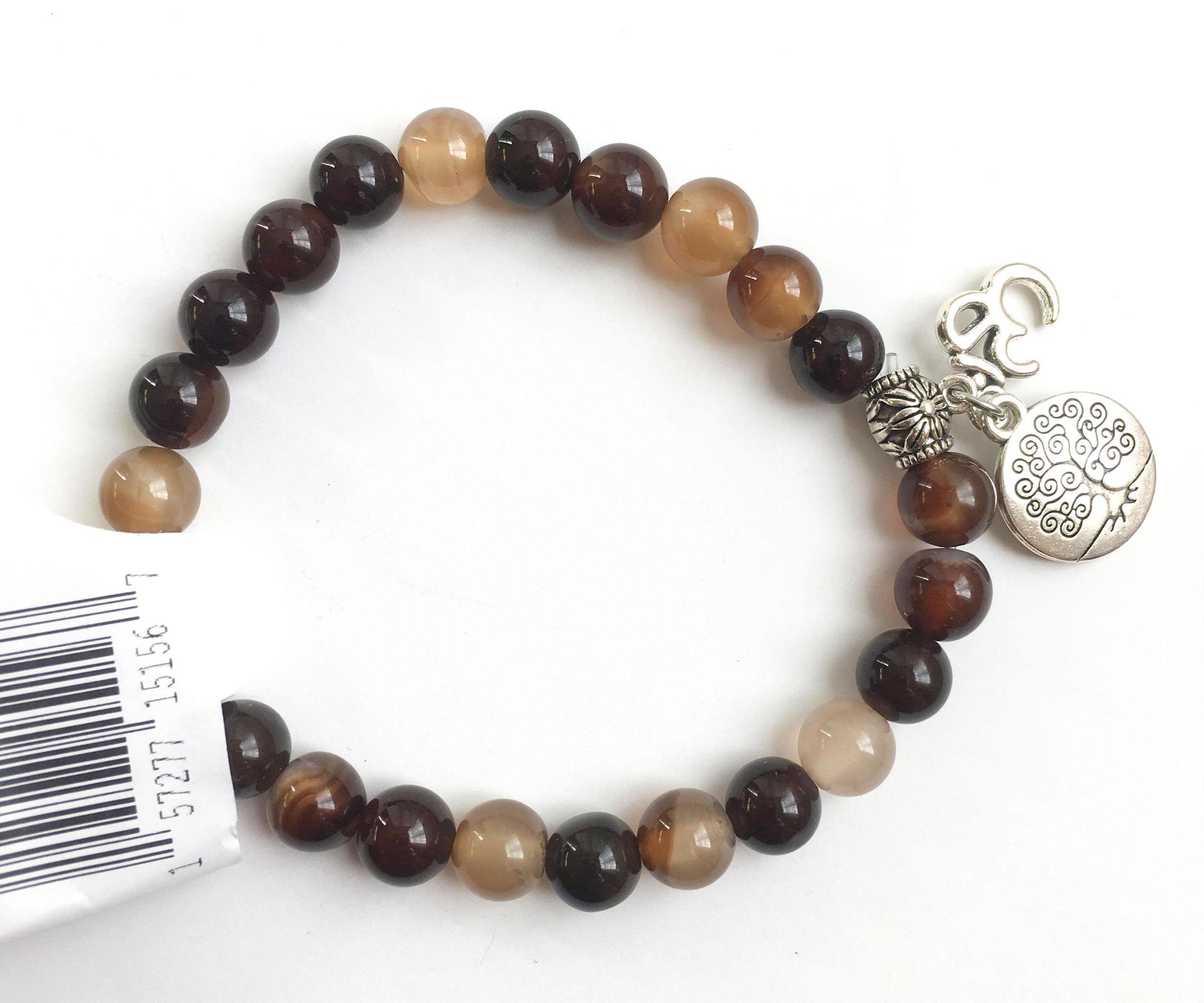 Sardonyx Beads Natural Stone Bracelet with Tree of Life, Om, Buddha Charms Prayer Beads 8 mm