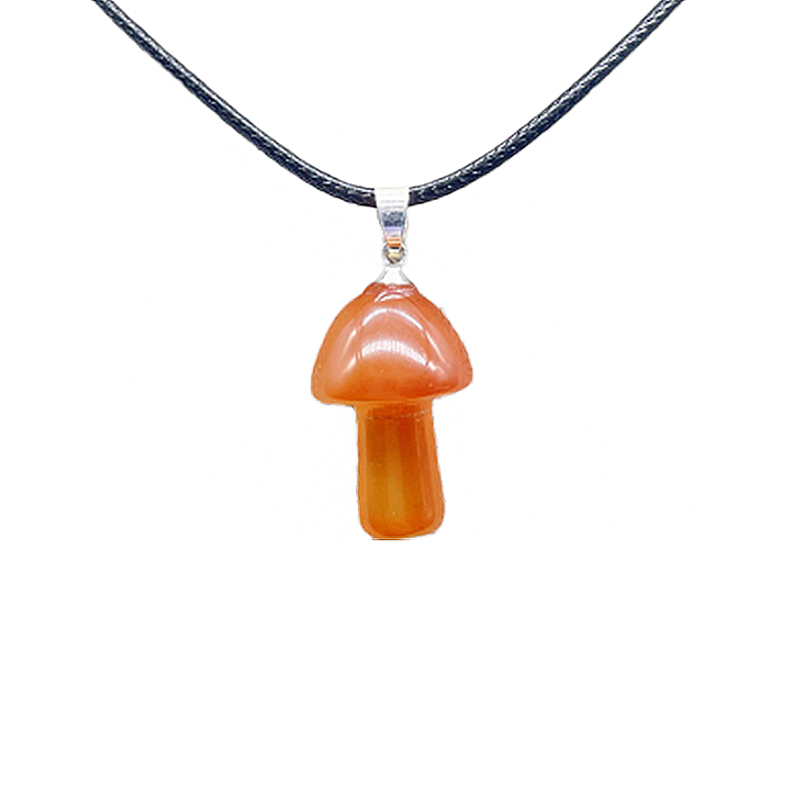Carnelian Mushroom Carved Pendant Necklace Natural Crystals For Energy Balancing, Meditation, Reiki, Healing Approx. 2cm Pendant