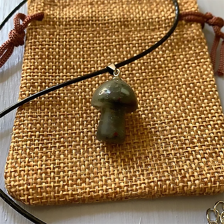 Dragon Blood Jasper Mushroom Carved Pendant Necklace Natural Crystals For Energy Balancing, Meditation, Reiki, Healing Approx. 2cm Pendant