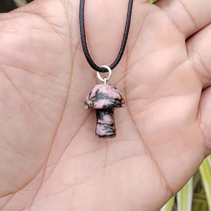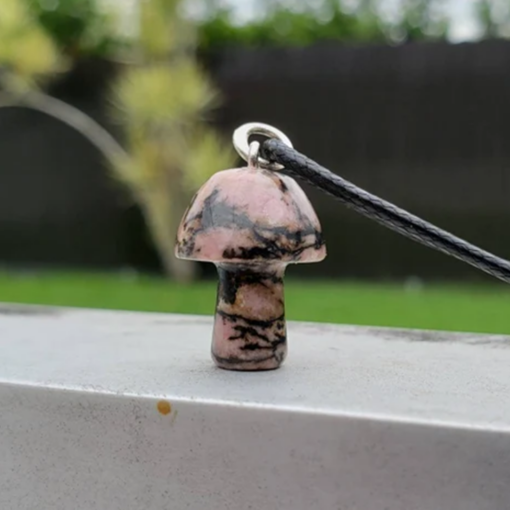 Rhodonite Mushroom Carved Pendant NecklaceNatural Crystals For Energy Balancing, Meditation, Reiki, Healing Approx. 2cm Pendant