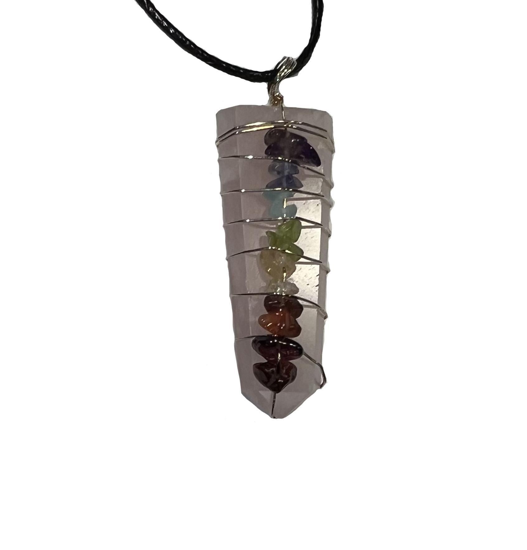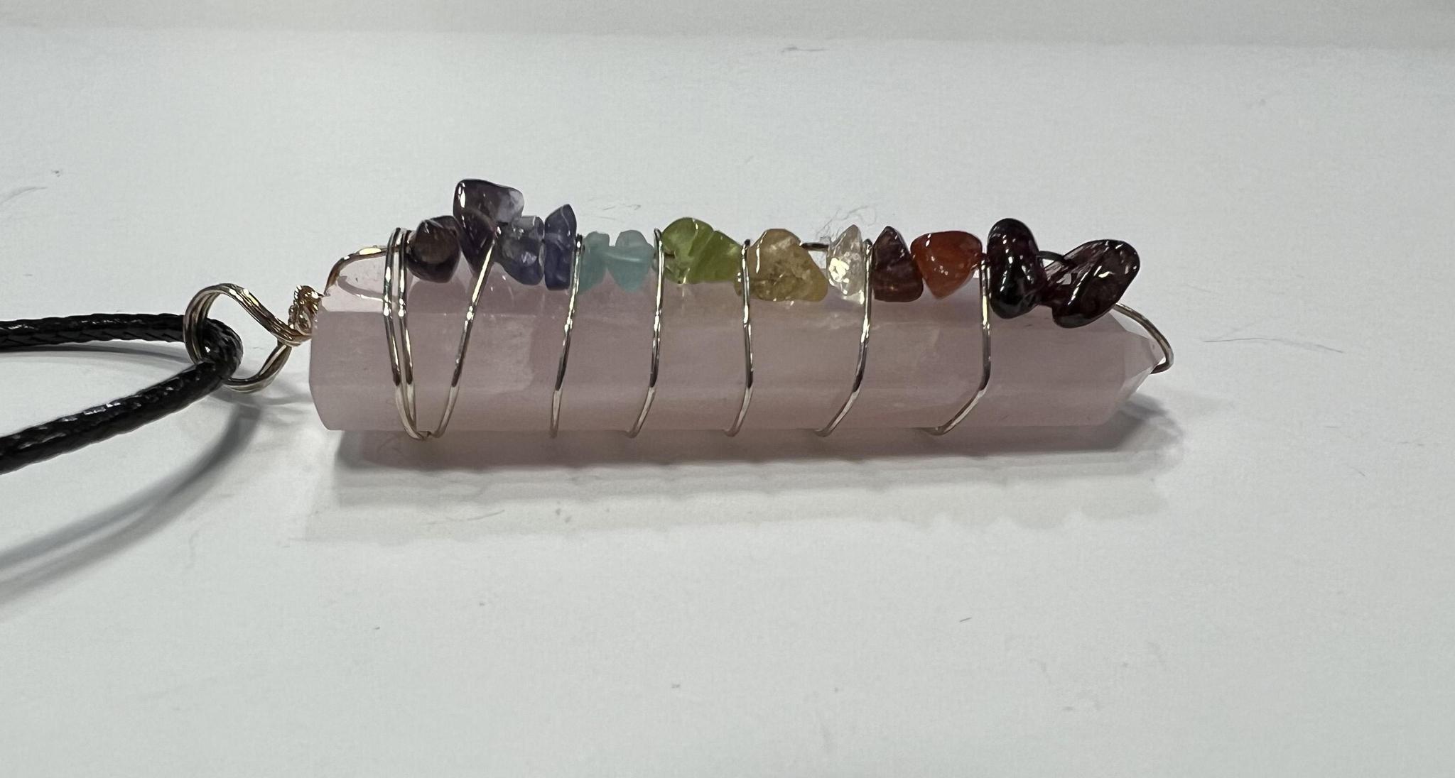 Rose Quartz Wire Wrapped 7- Chakra Pendant necklace, 7 Chakra necklace, tree of life necklace 100% Handmade