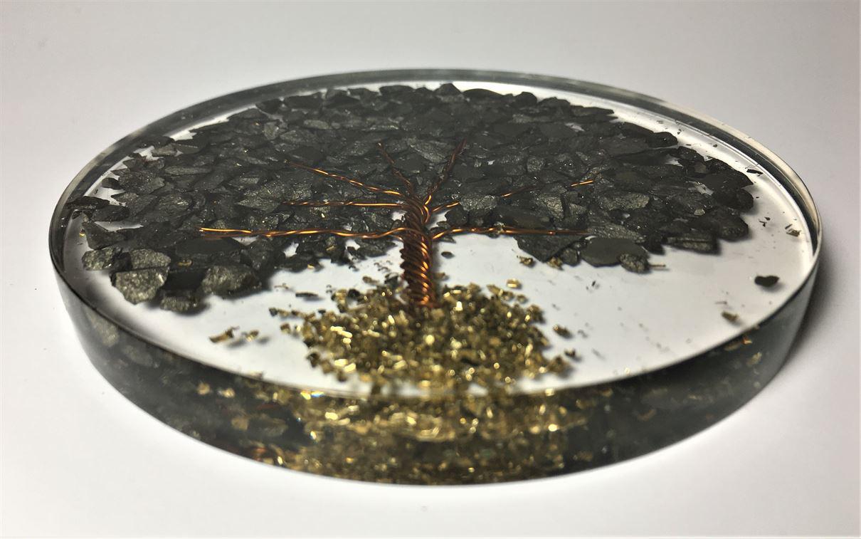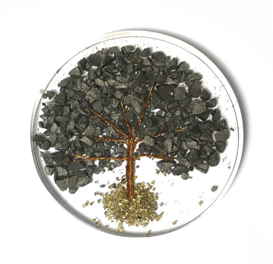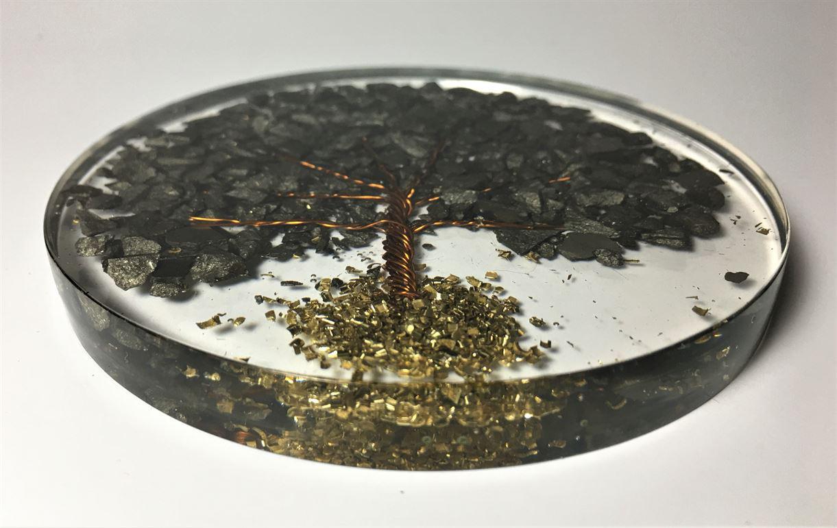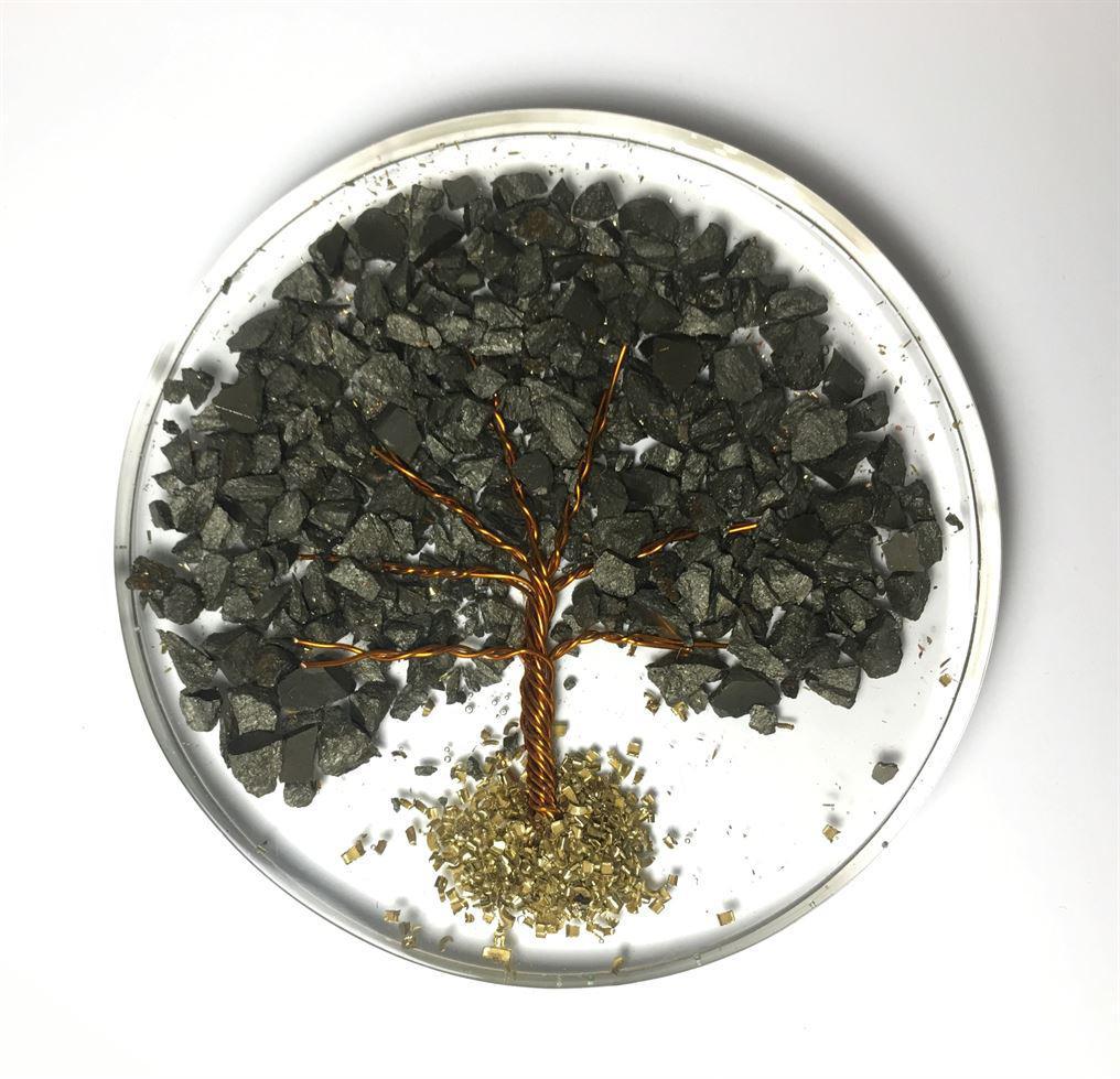 Orgone Coaster / Disc / Plate with Natural Stone Tree of Life Pyrite 3.5″ inch diameter