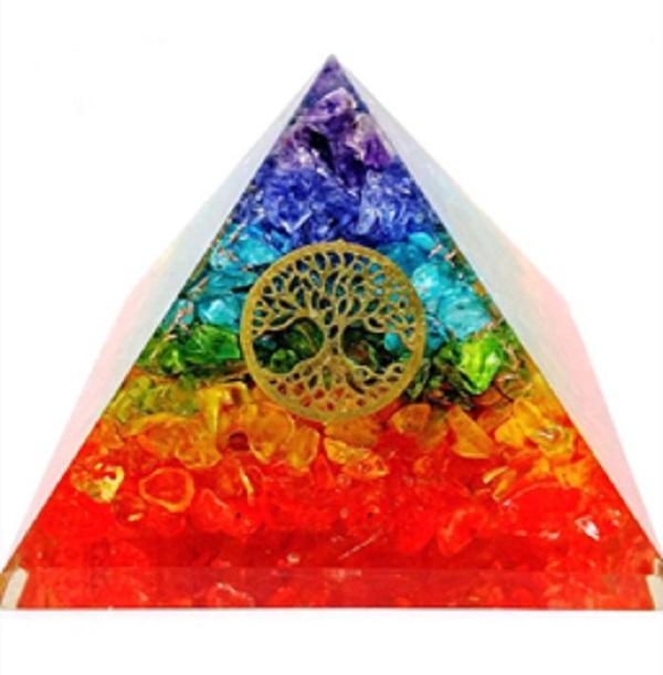 7-Chakra Layered Orgonite Pyramid with Tree of Life Symbol 3*3*4 inch