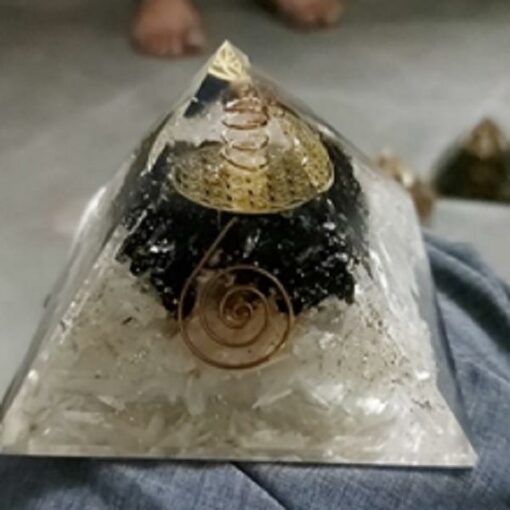 Selenite and Black Tourmaline with Flower of Life & Kundalini Symbol Orgonite Pyramid 3*3*3 inch