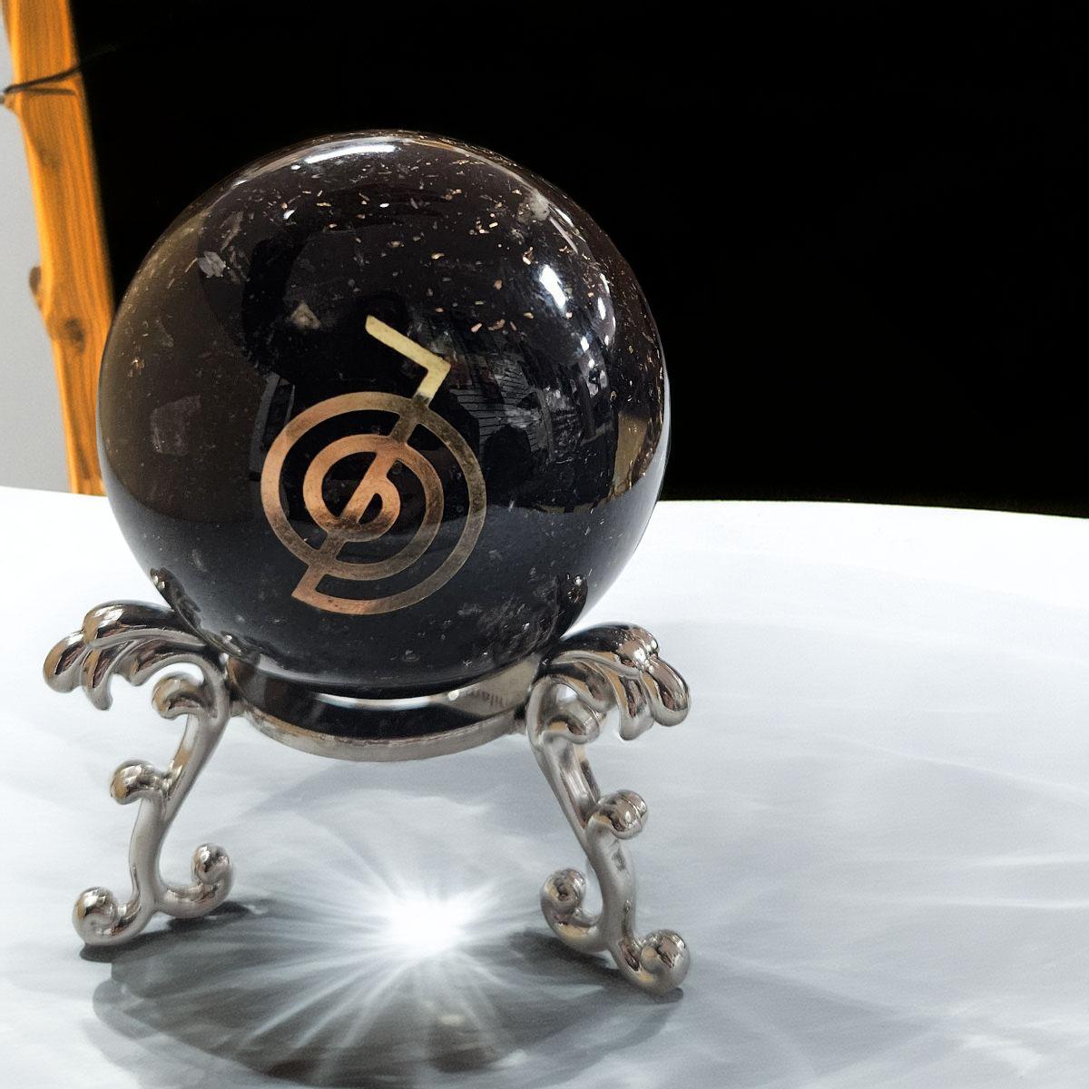 A Note on Natural Beauty: Every artifact is unique. Because Tourmaline forms in varying textures of deep black and the symbols are hand-placed within the resin matrix, your sphere will feature its own distinct internal “nebula”.