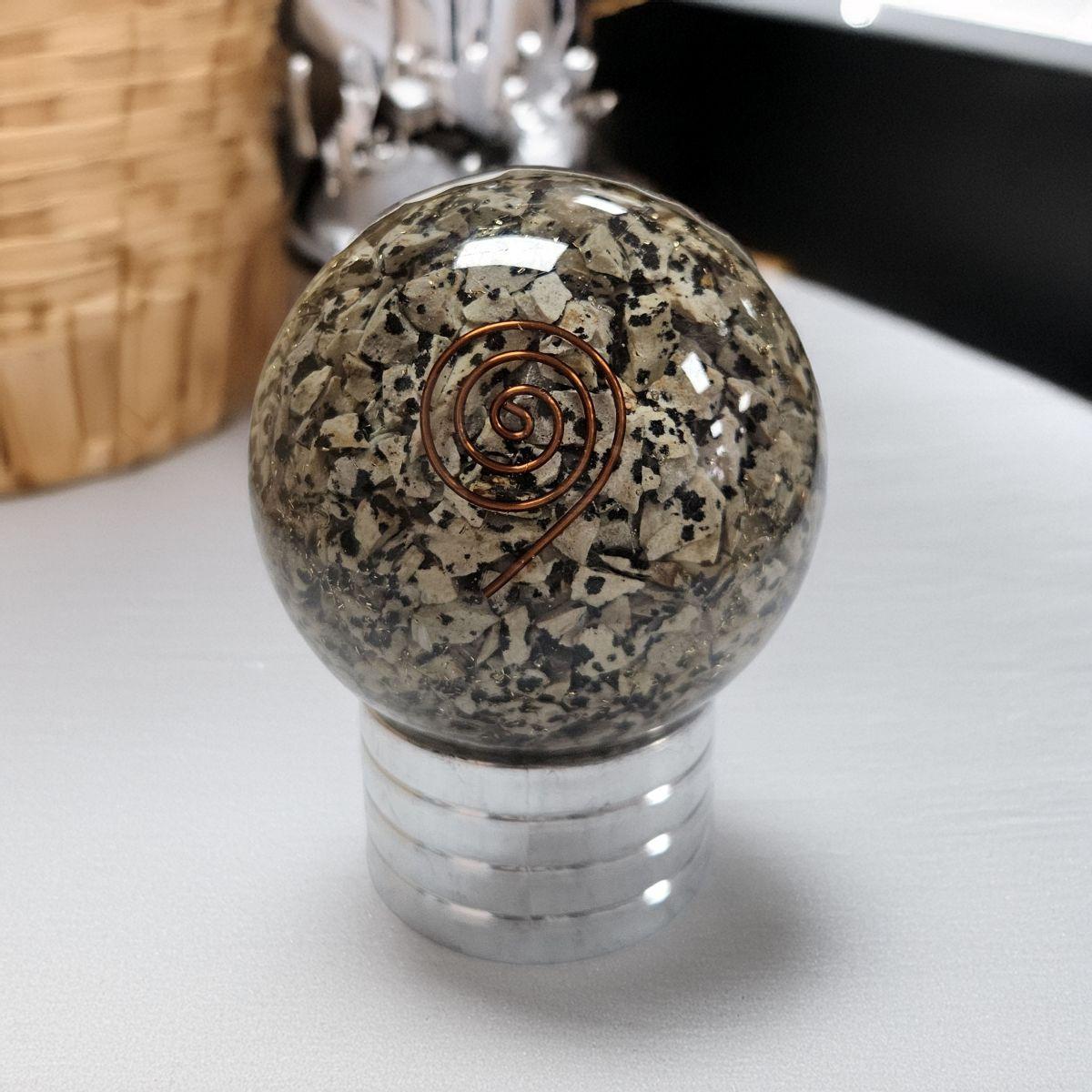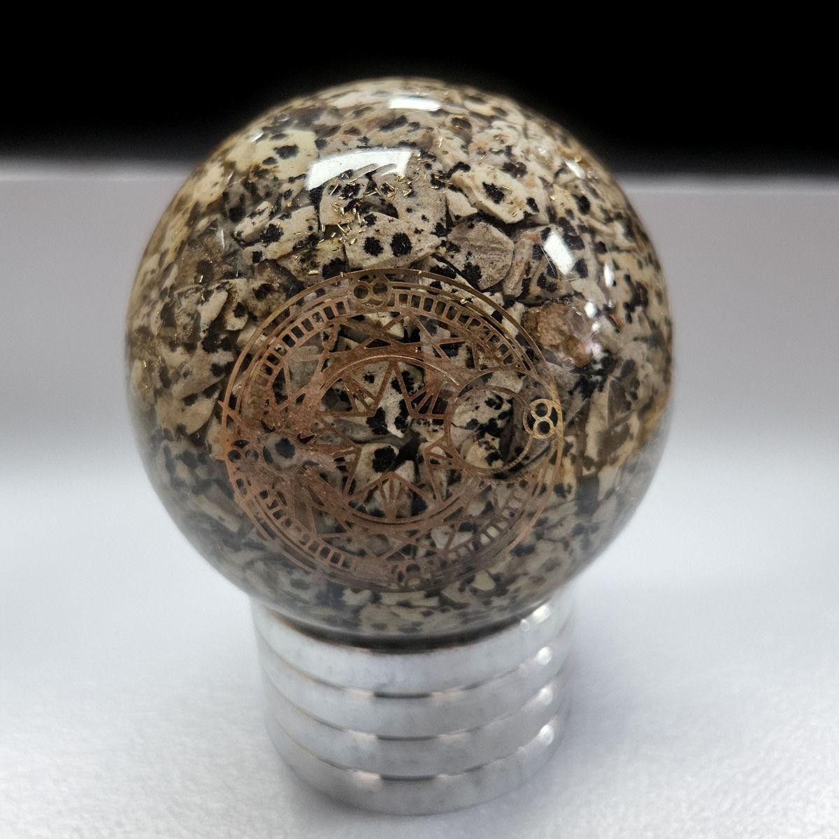 Are you ready to rediscover your joy and shield your space? Claim your Dalmatian Jasper Orgone sphere today.