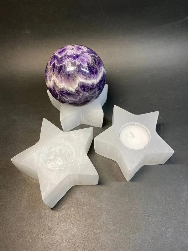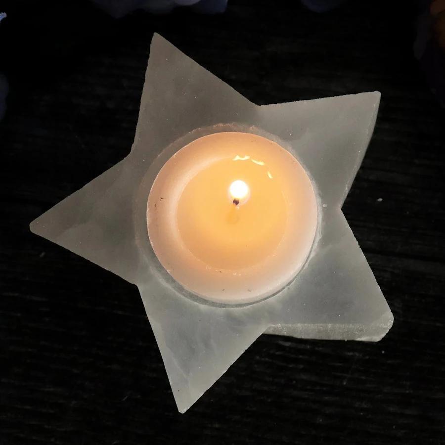 Place a tea light inside the star. As you light the candle, visualize the heat drawing stagnant energy out of the room and into the Selenite to be transmuted into pure radiance.