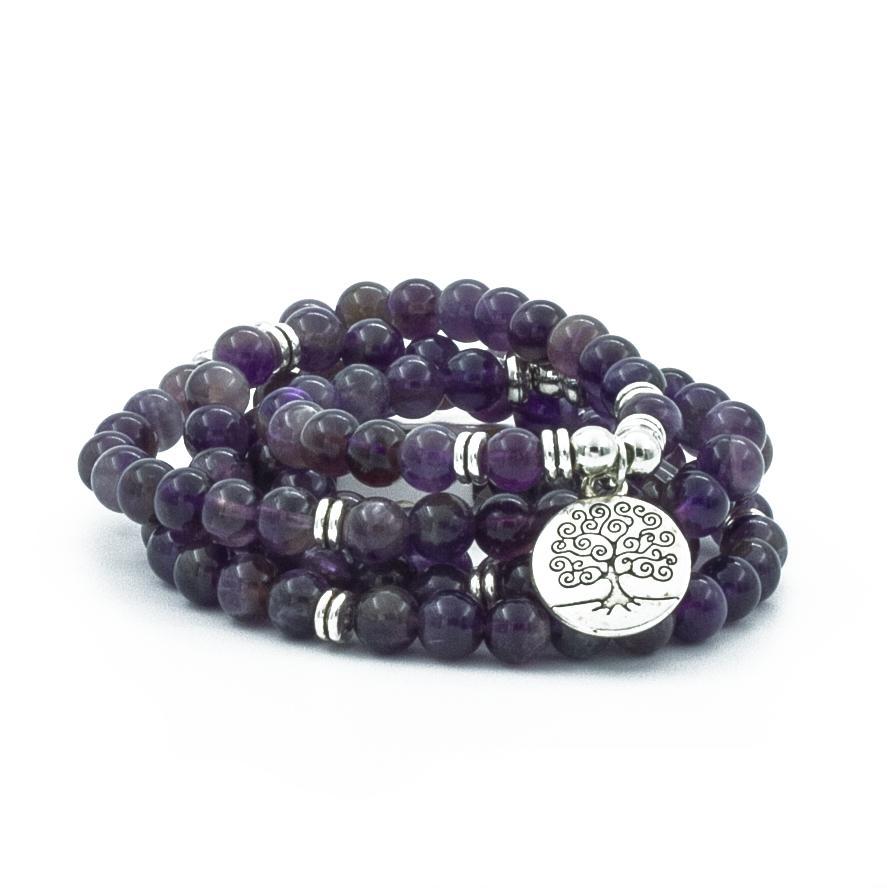 Amethyst 108 Mala 6 & 8mm Beads Bracelet Mala Prayer Beads OM Charm Meditation Necklace