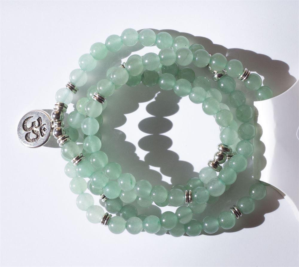 Green Aventurine 108 Mala 6 & 8mm Beads Natural Stone Bracelet Mala Prayer Beads OM Charm Meditation Necklace