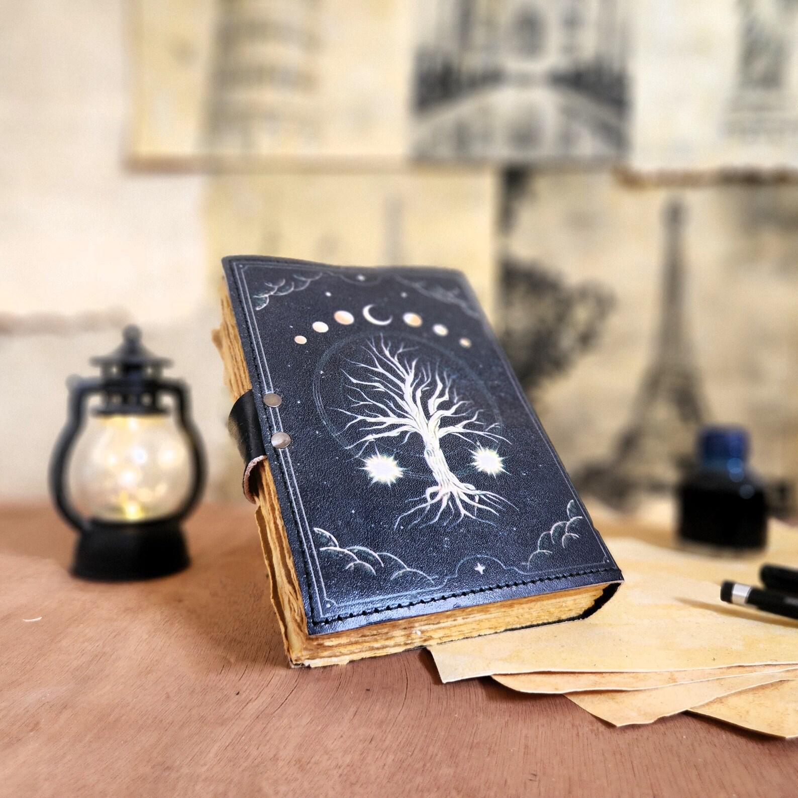 To hold this journal is to feel the harmonious connection between earth and sky. The Tree symbolizes grounding and growth, while the Moon and stars represent intuition and cosmic cycles. It is the ideal companion for the dream worker, the astrologer, the mystic, or anyone seeking to deepen their understanding of the universe and their place within it. Let its aged pages become the canvas for your journey through the celestial realms.