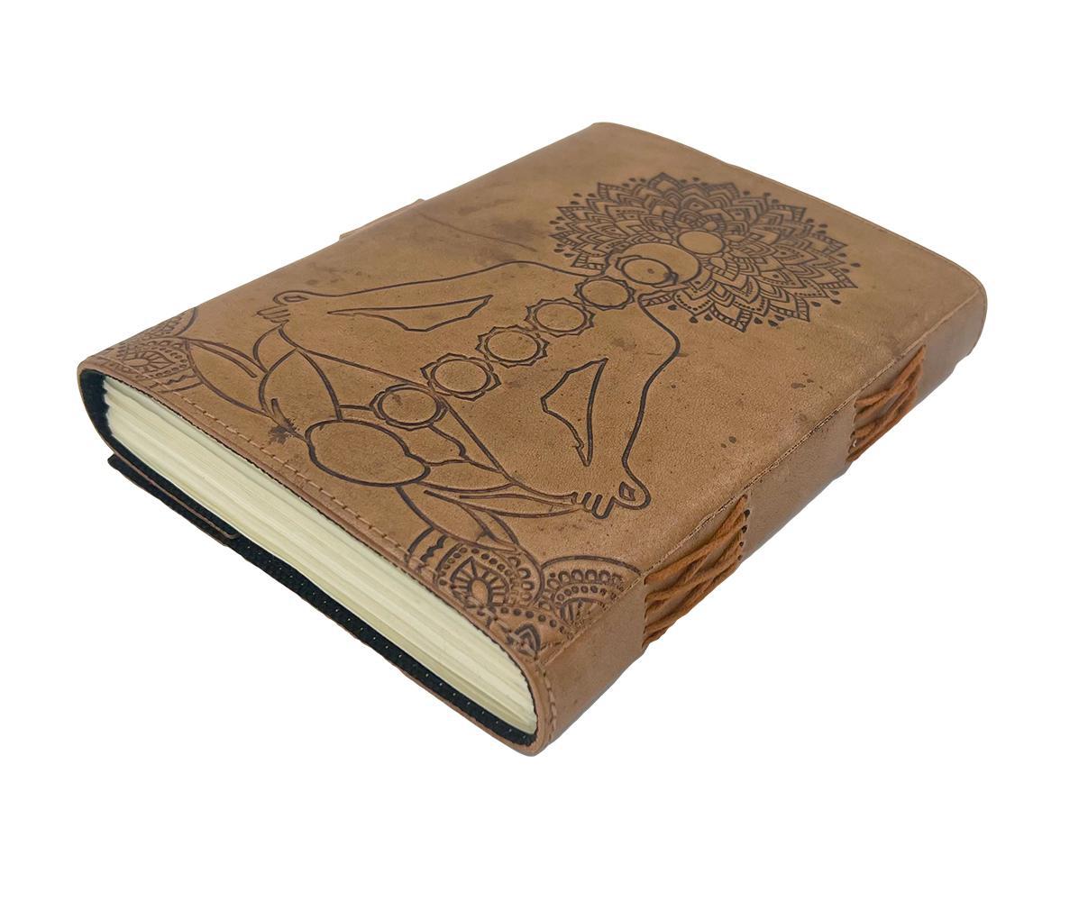 - Upon receiving your journal, find a quiet moment. Place your hands over the meditating figure. Feel the energy of the stones and state your intention for this book to be a guide on your path.