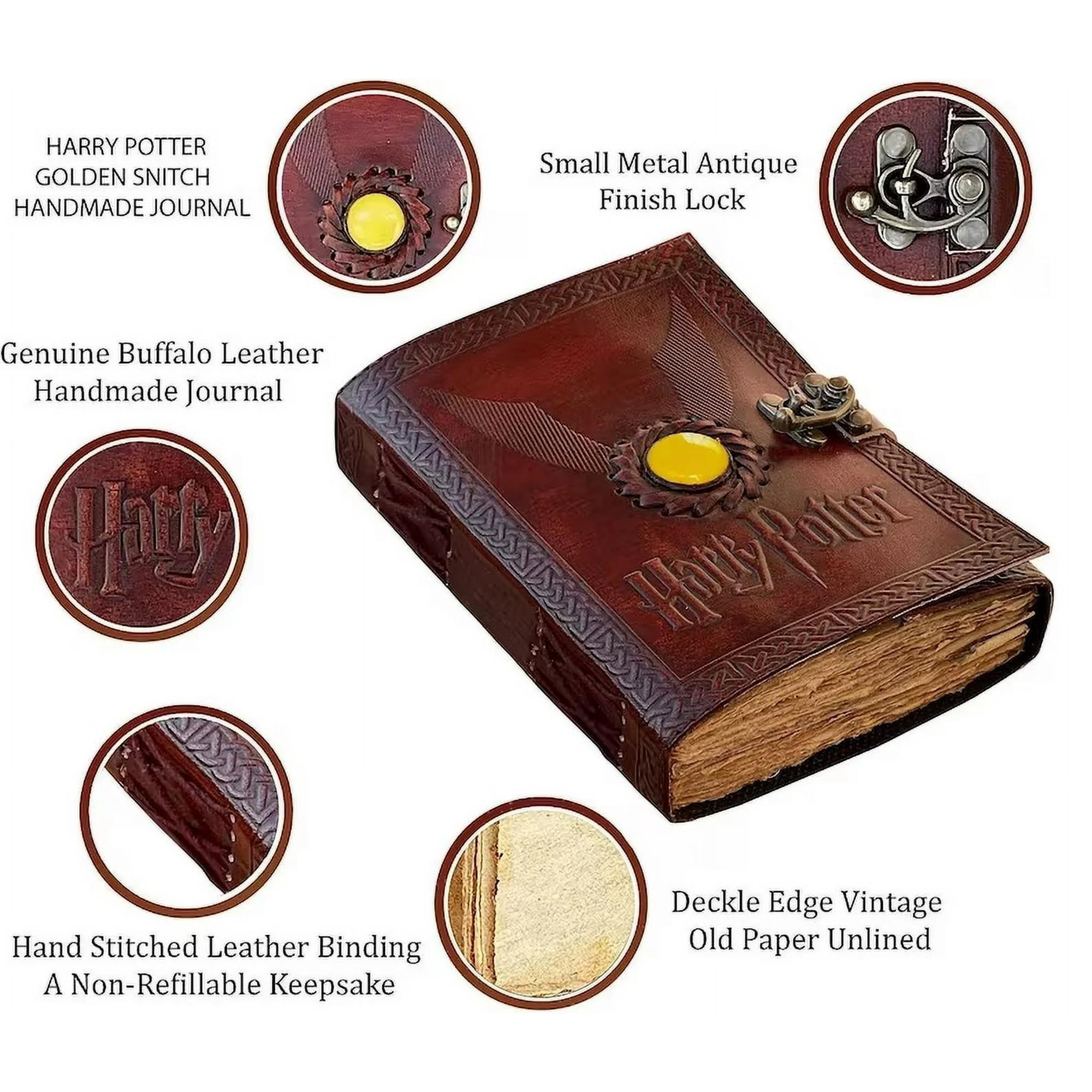 This journal is lovingly handcrafted and inspired by the magical world of Harry Potter, featuring recognizable motifs and the embossed name. It captures the spirit and aesthetic beloved by fans.