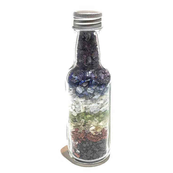 Seven Chakra Chips In Bottle Gemstone Products, 7-Chakra Crystals, 4.5-5 inch bottle approx.