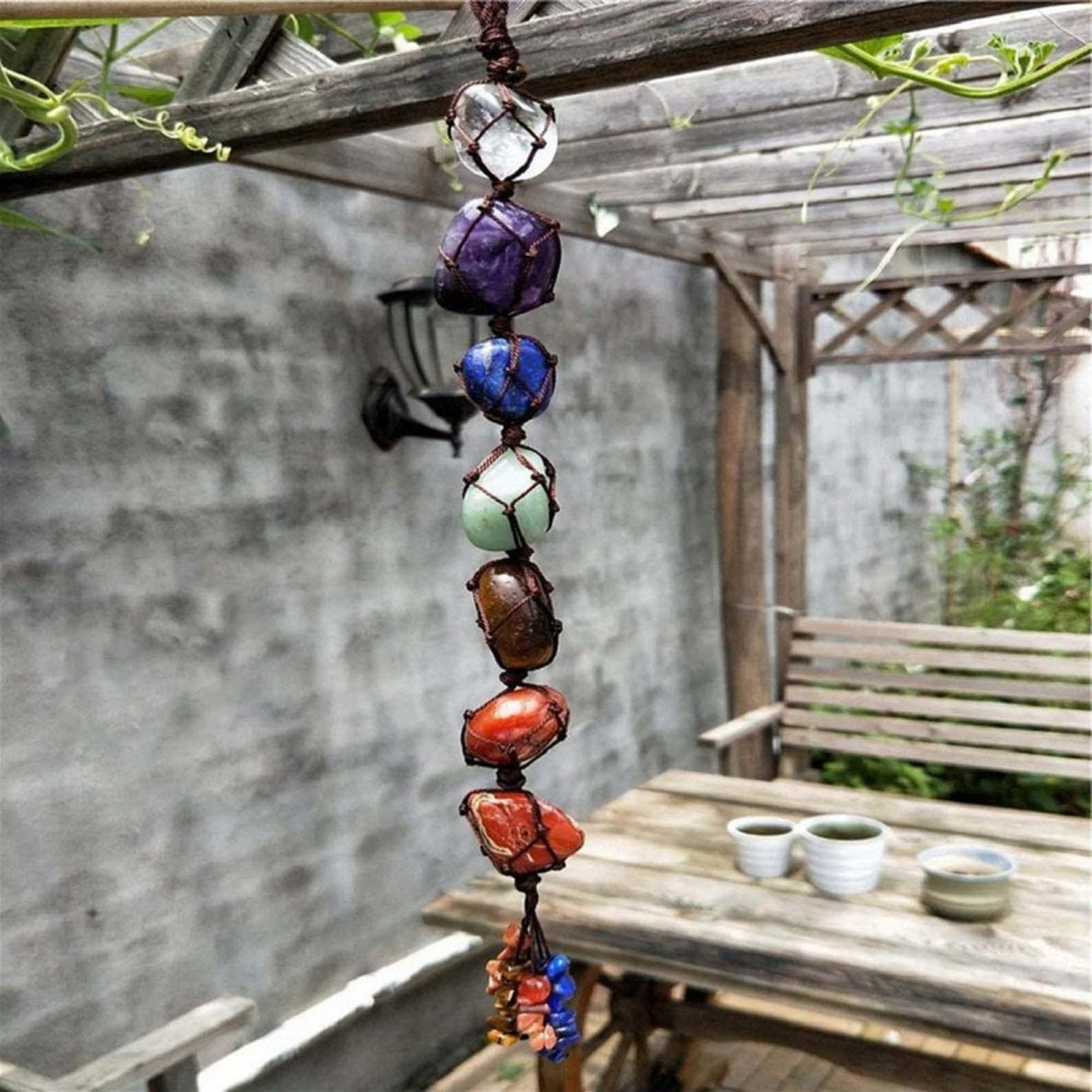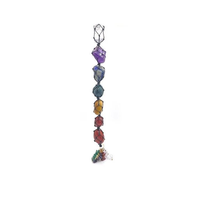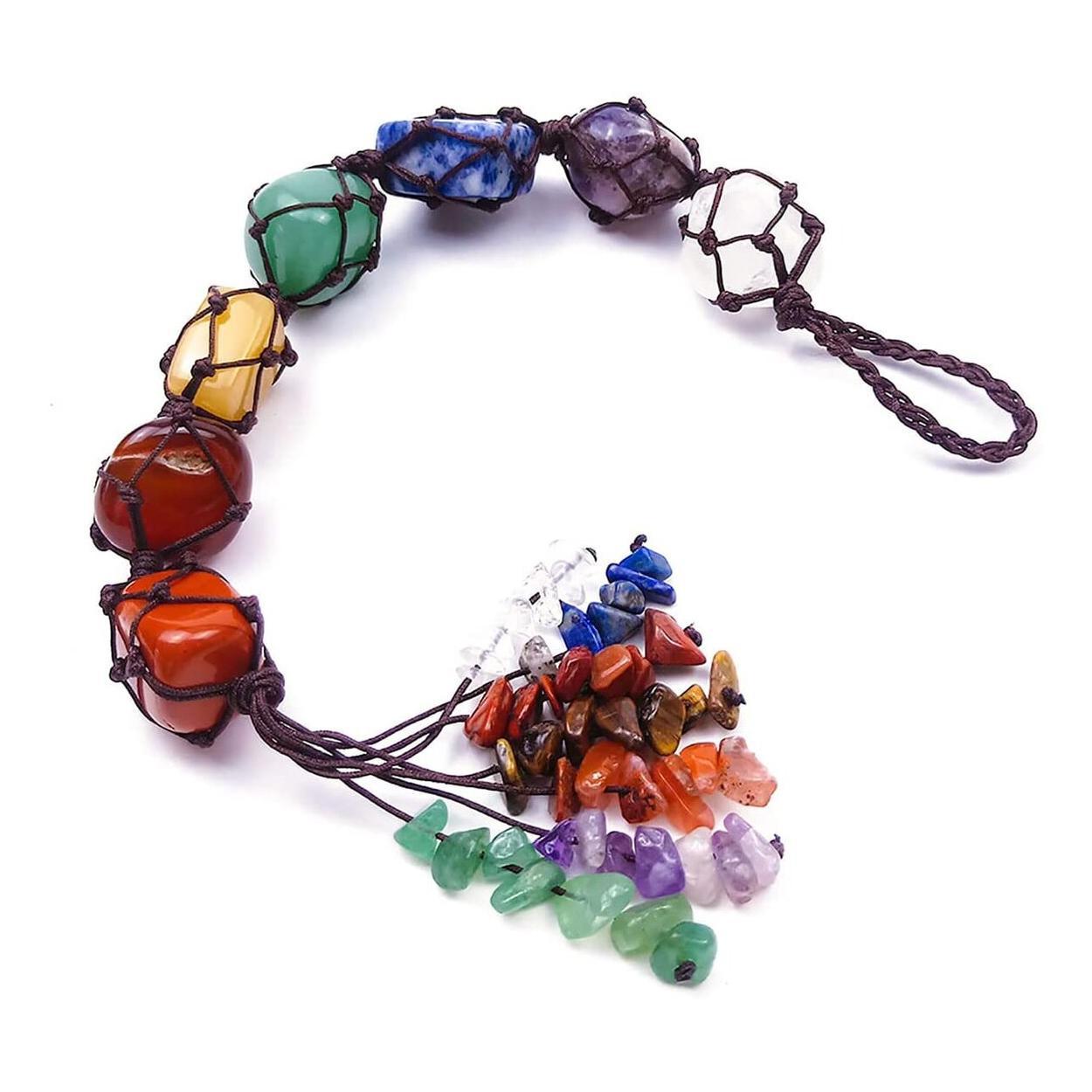 7 Chakra Tumbled Stone Hanging with Tassel- Car Hanging Reiki Crystals Hanging Decor