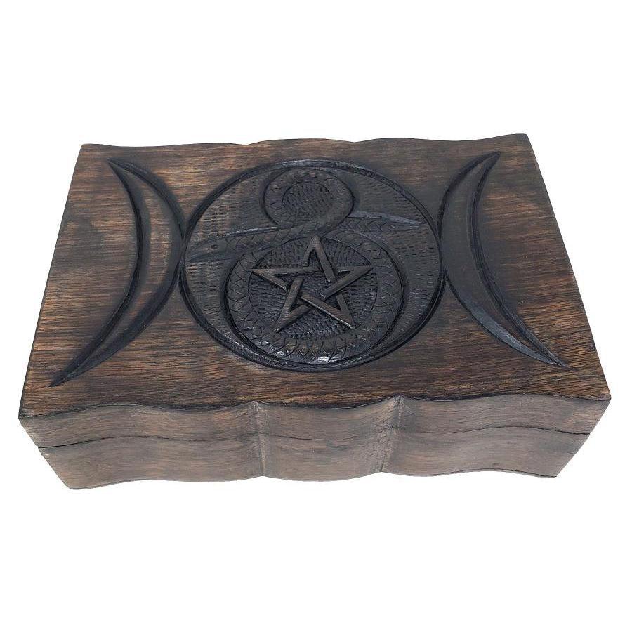 Hand Carved Decorative Pentagram Cobra Wooden Storage Box, 9"x6"x2.75"