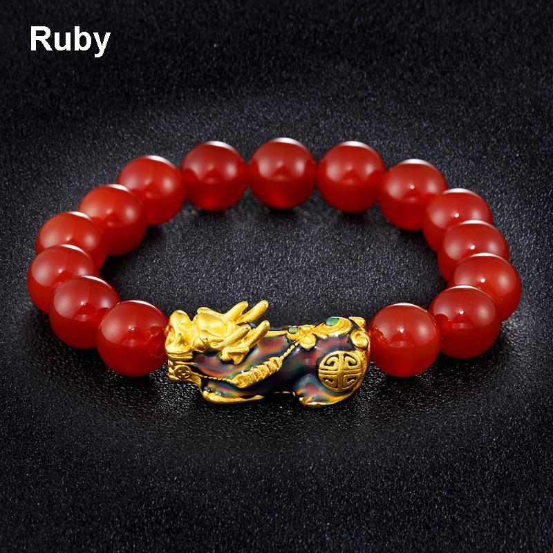 Red Color Feng Shui Charm Bracelet with Charms Prayer Beads, 10 mm stone beads