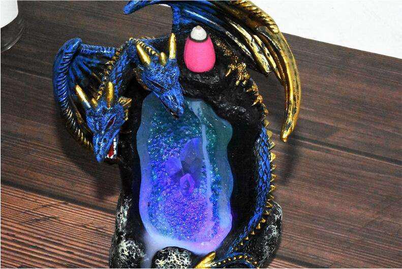 Dragons with Crystal Cave and LED Light Ceramic Backflow Incense Holder Waterfall Incense Burner, Reflux Burner, Handmade Ceramic, Home Décor for Meditation, Mini-Zen Experience Size: 12.5*9*17 cm