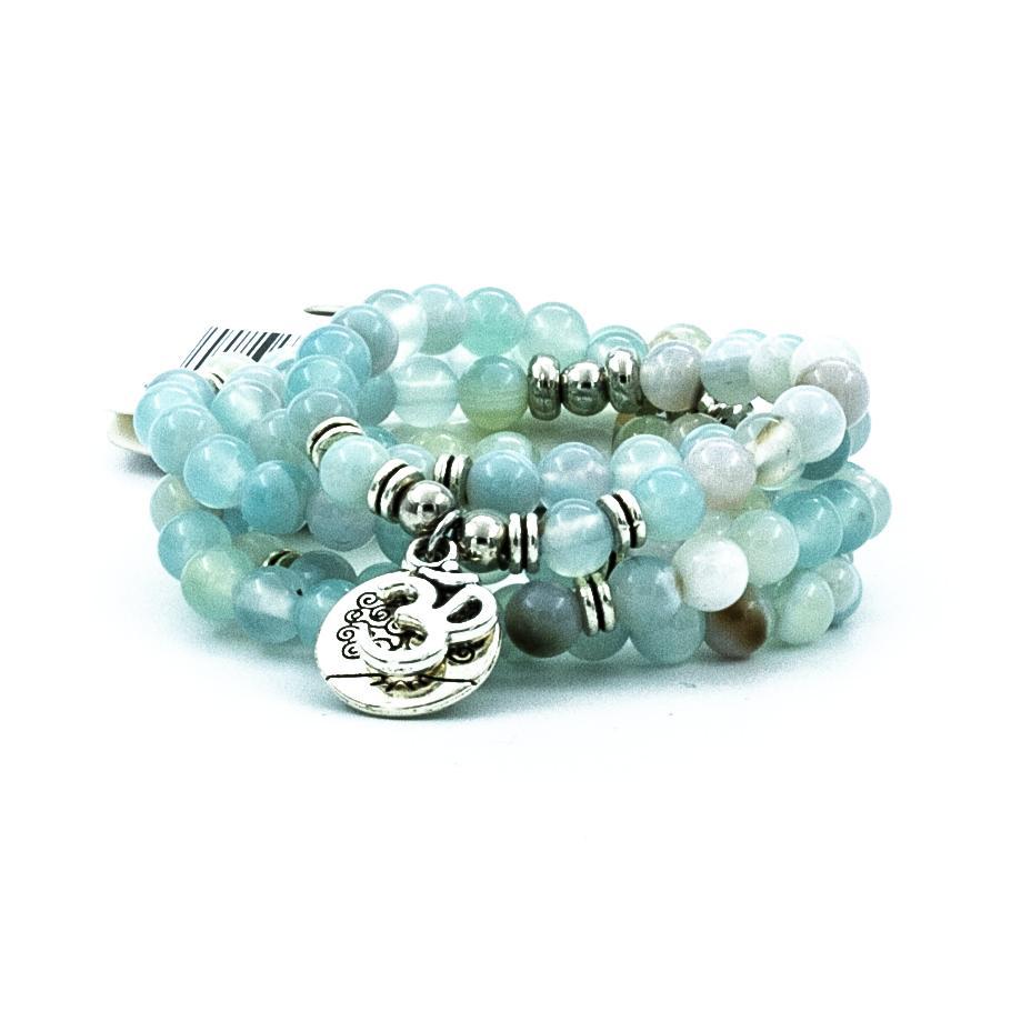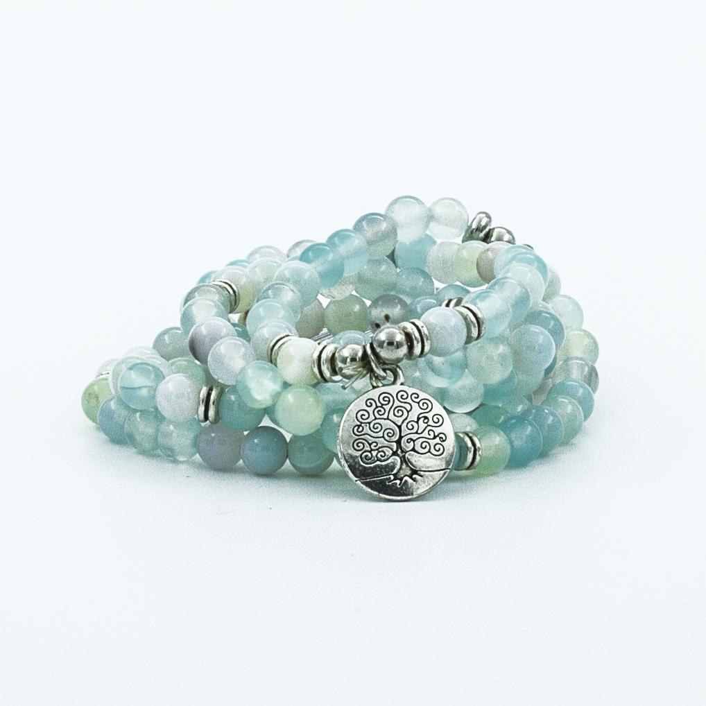 Blue Aqua Chalcedony 108 Mala 6 & 8mm Bead Stone Lotus Pendant Necklace Charm Natural Stone Yoga Bracelet