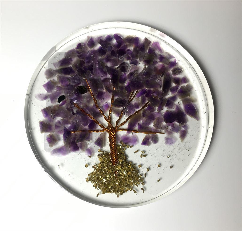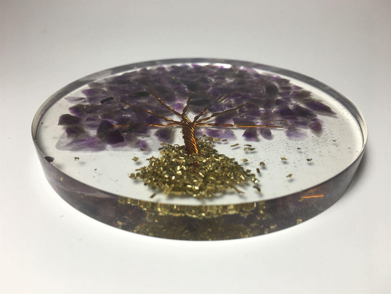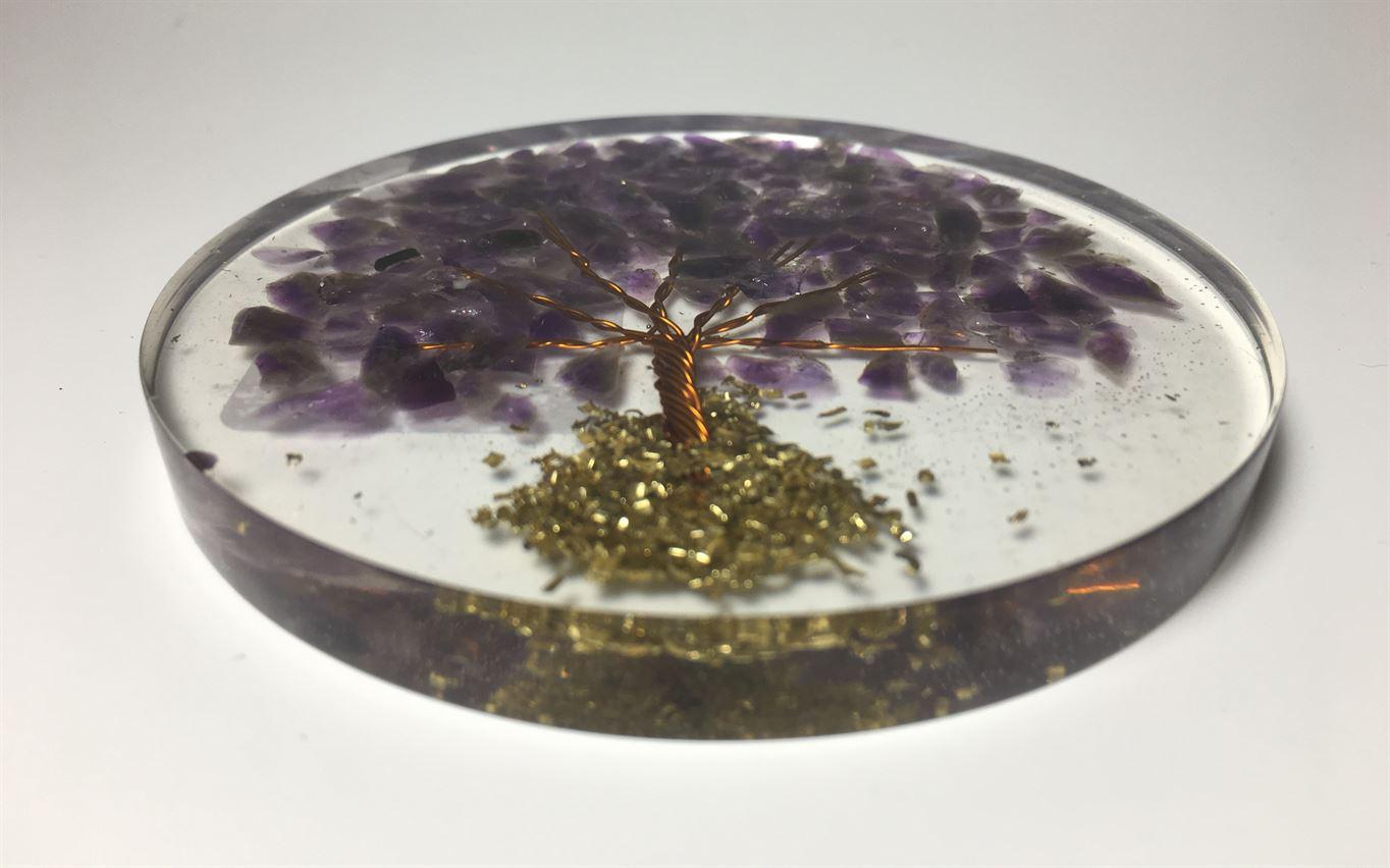 Orgone Coaster / Disc / Plate with Natural Stone Tree of Life Amethyst 3.5" inch diameter