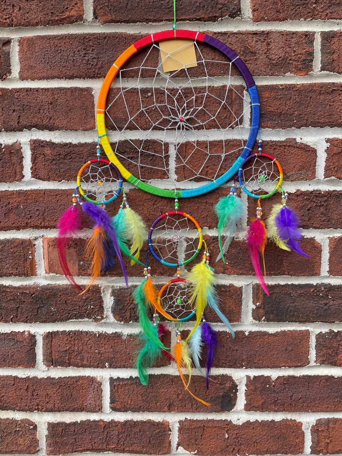 Nylon 4-Baby thread and bead dreamcatcher 4 baby rainbow color Dia 22cm L 65 cms