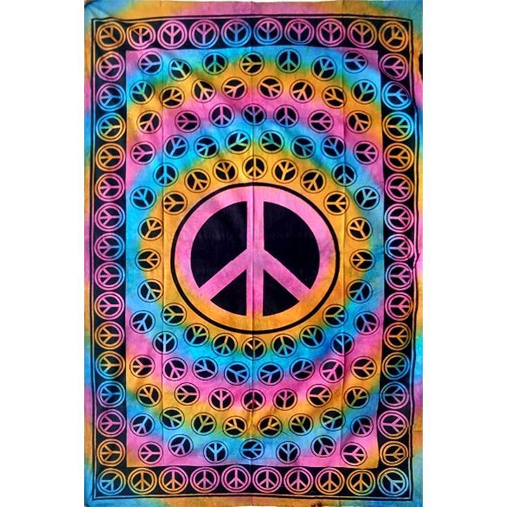 Peace Sign Tie dye Wall Hanging Handmade Cotton Tapestry 84" x 54" inch