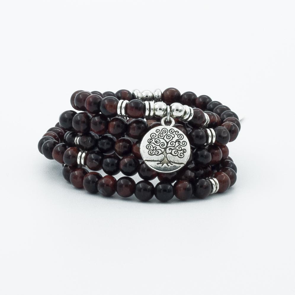 Red Tiger Eye 108 Meditation Mala Beads Natural Stone, OM Charm