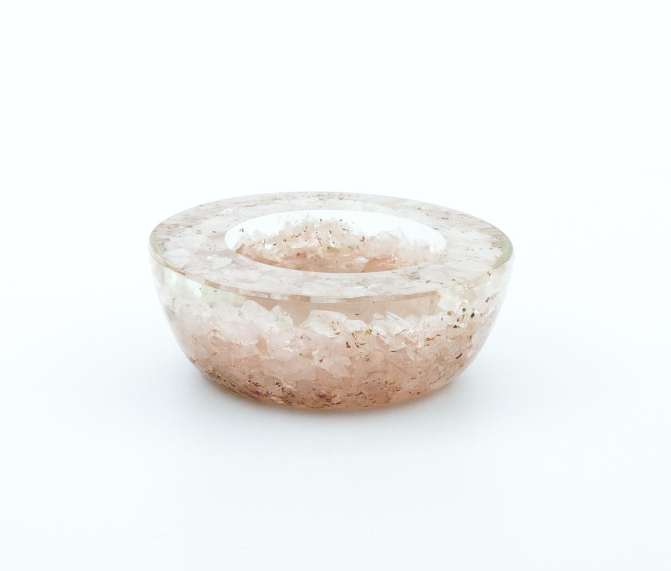 Rose Quartz Crystal Orgone Candle Holder/ Natural Stone Crystal Candle Stand for Tealight Candles 2.8 x 7 x 2.5 cm